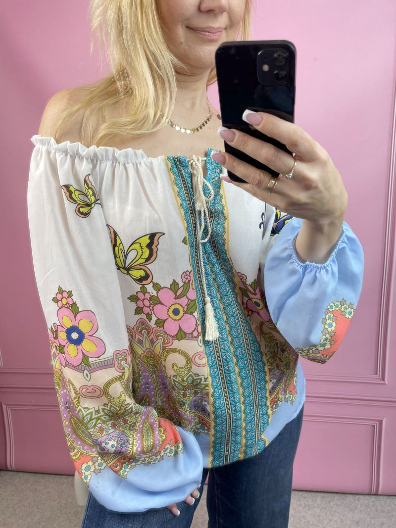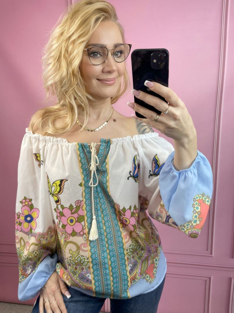 Bluzka Hiszpanka ze Wzorem Indyjskim – Błękit