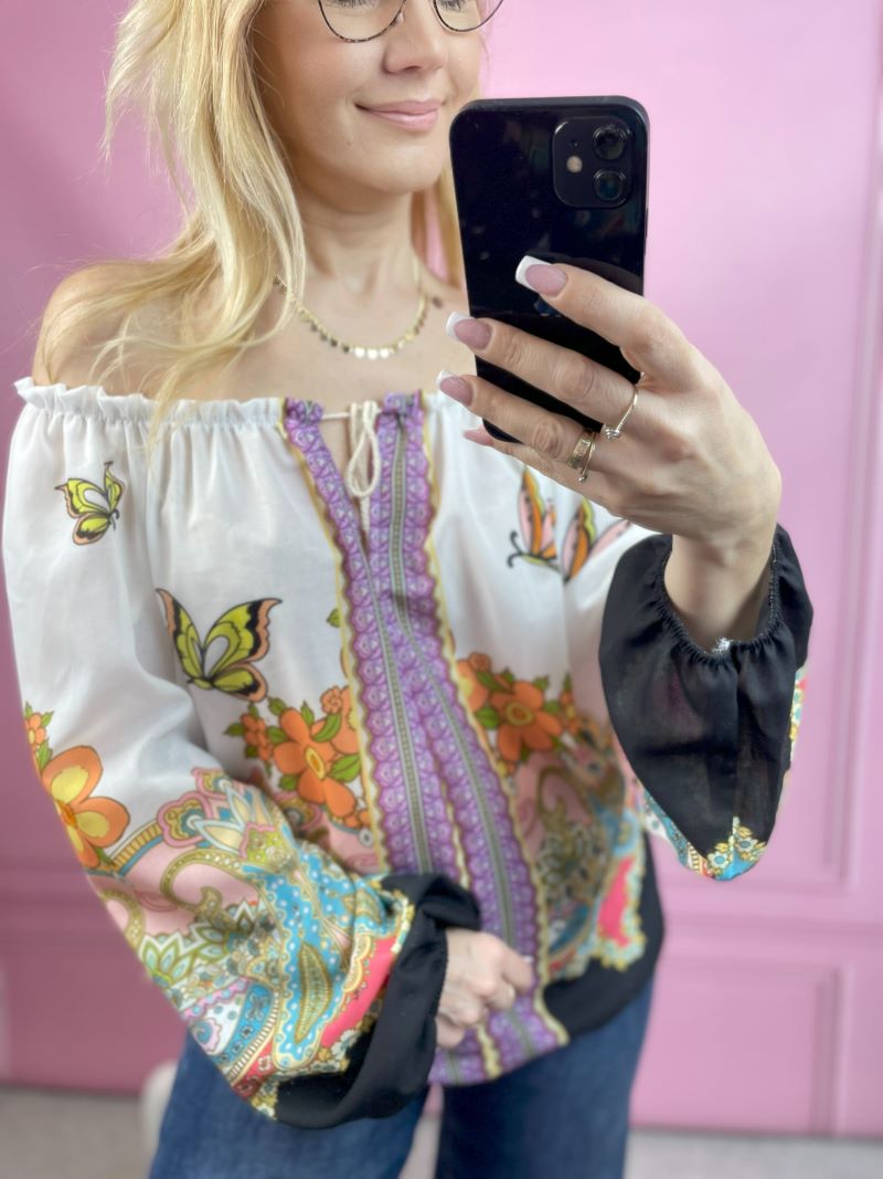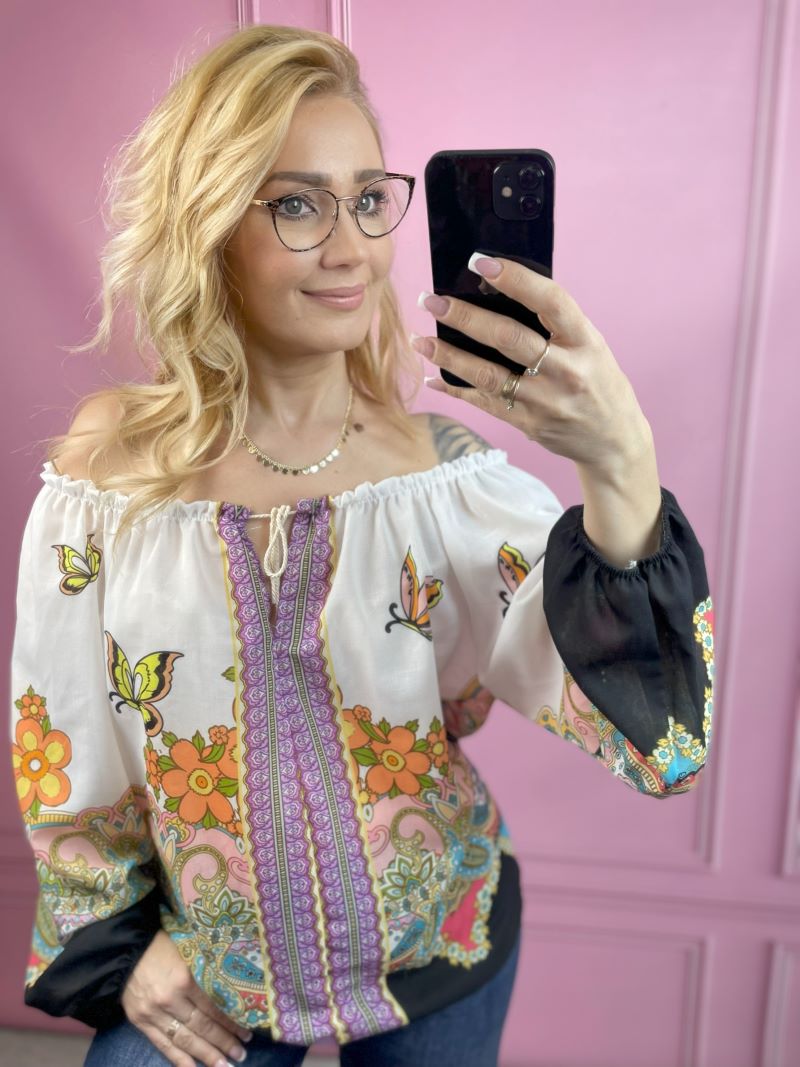Bluzka Hiszpanka ze Wzorem Indyjskim – Czarny