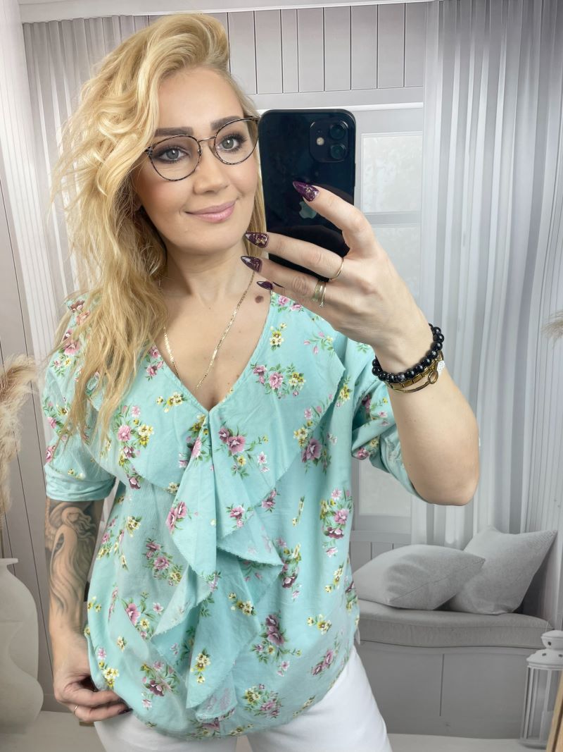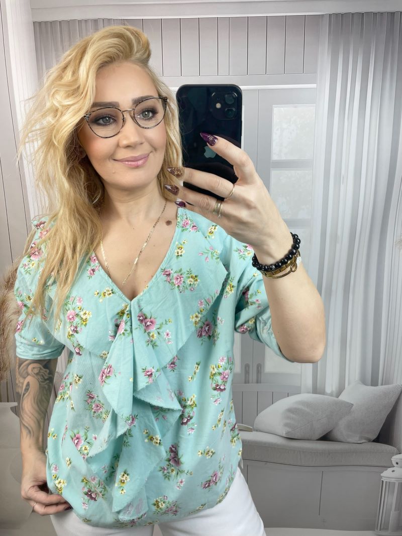 Bluzka Sztruksowa w Kwiaty 100 % Bawełna – Mięta