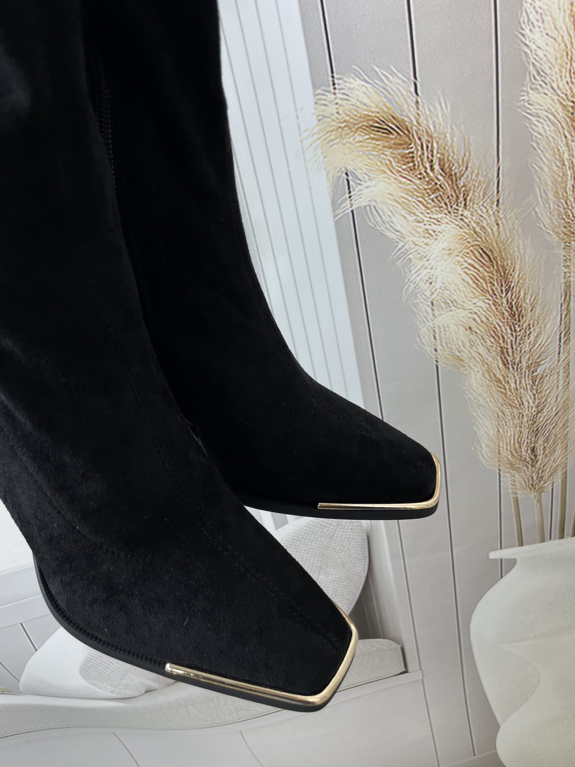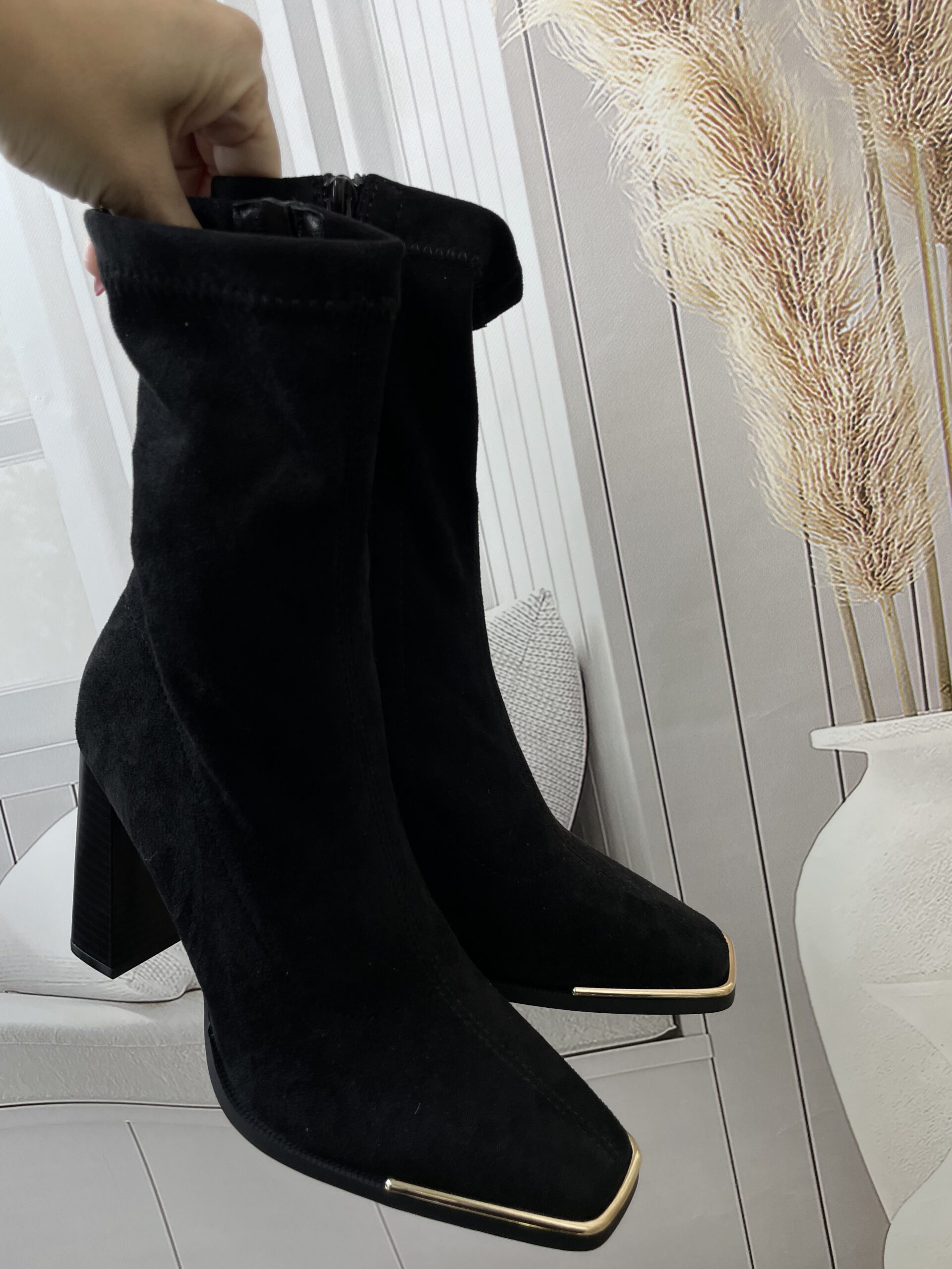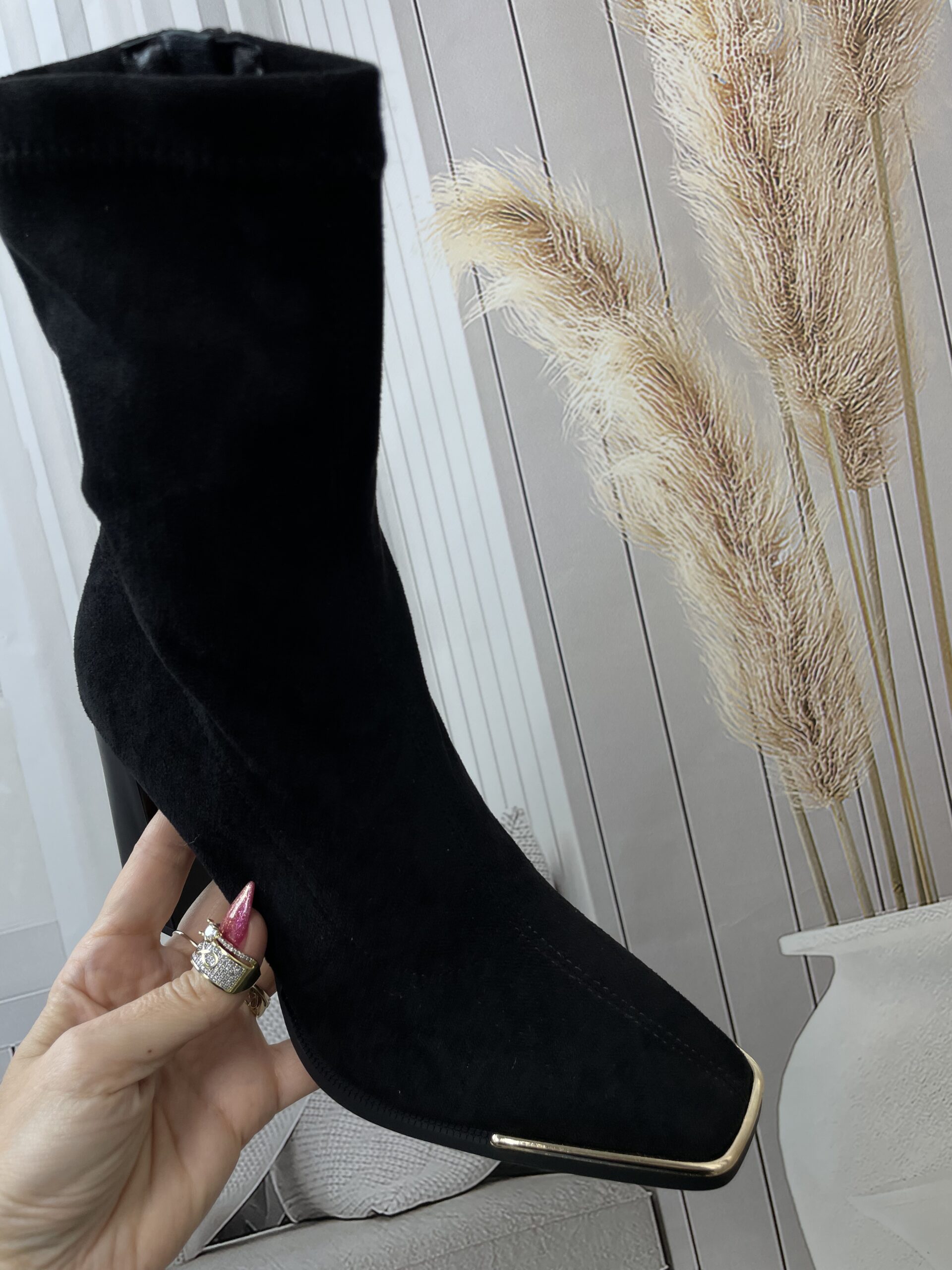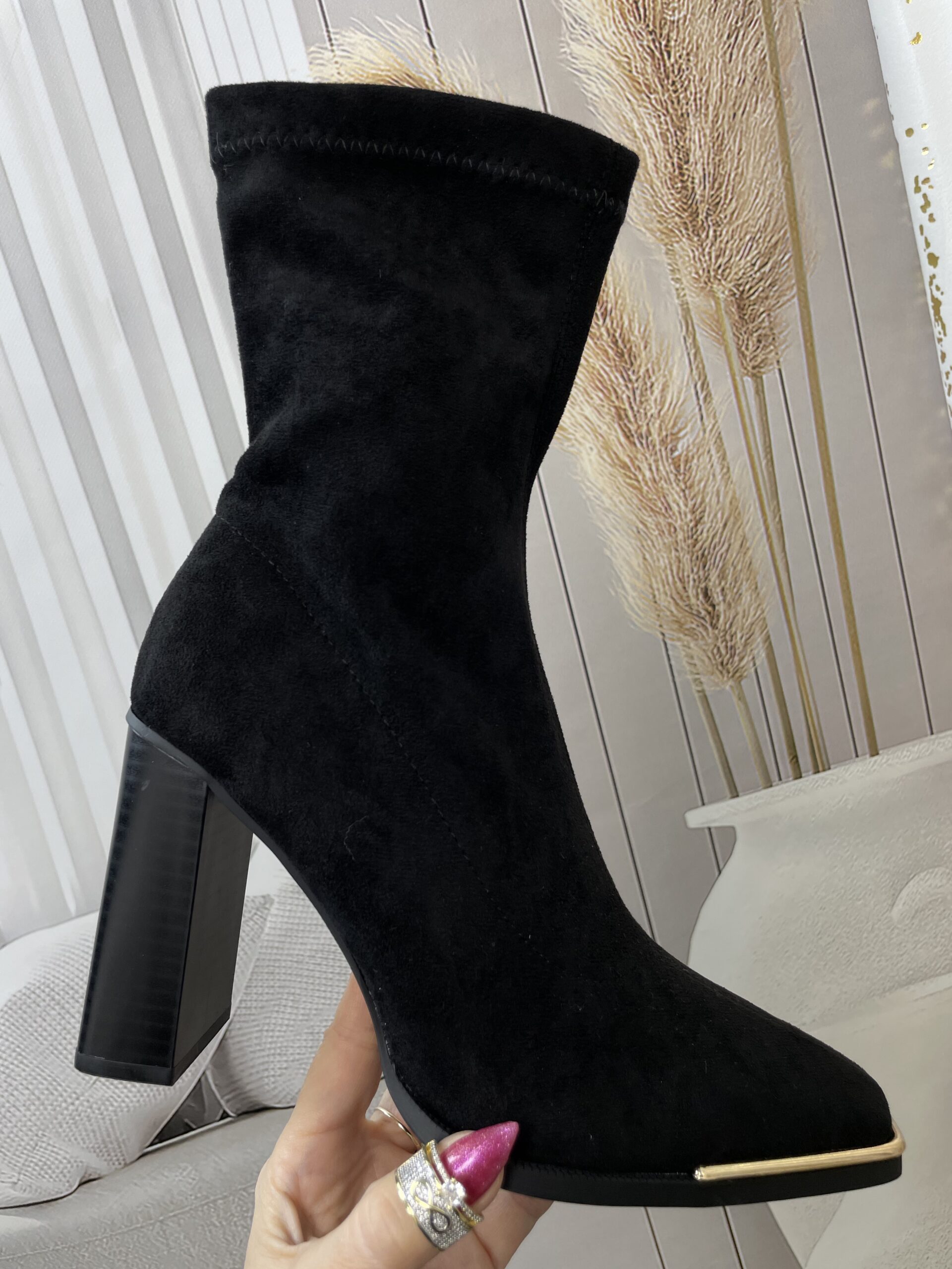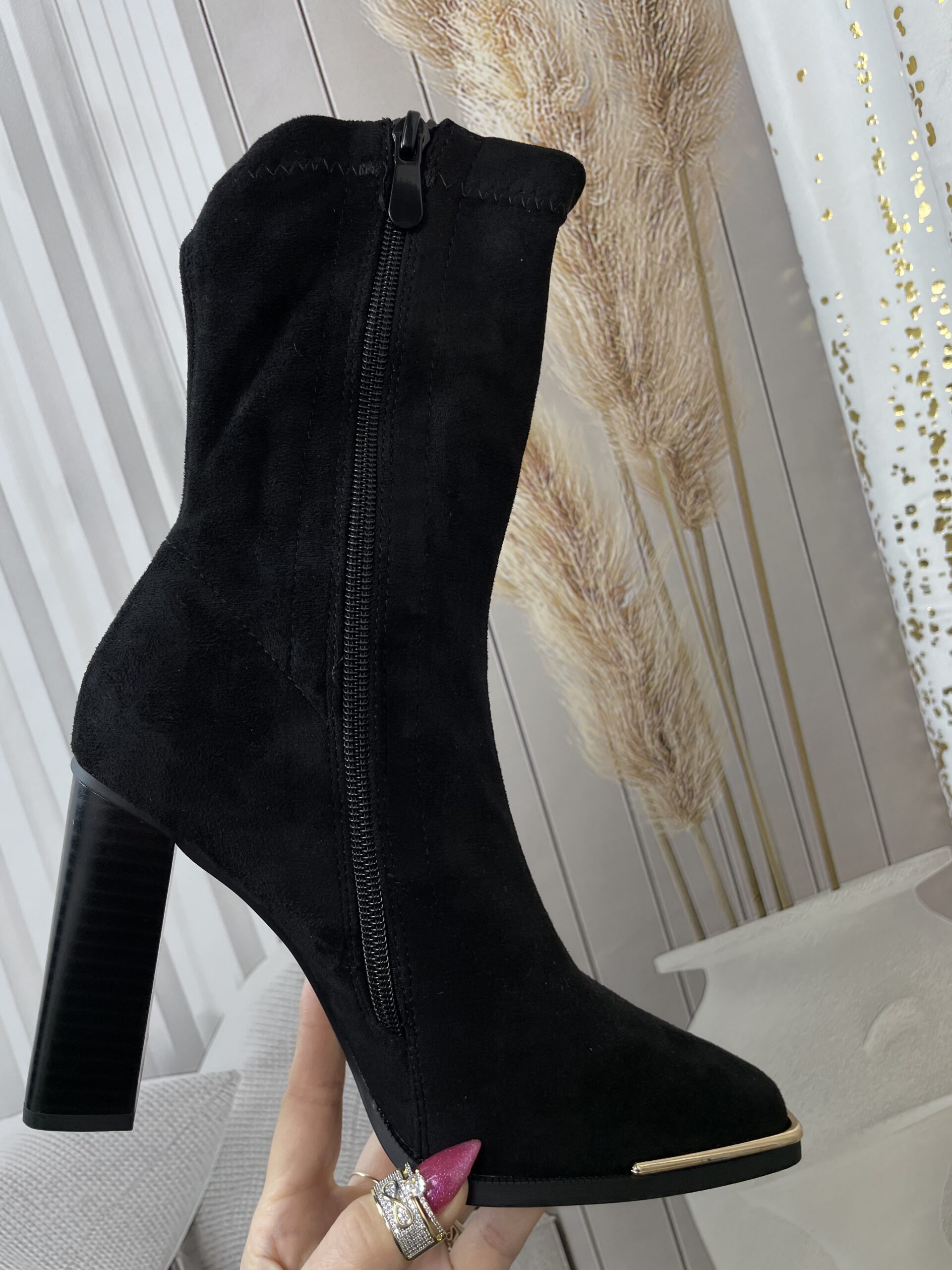 Botki z Eko-Zamszu na słupku , to doskonałe połączenie elegancji i stylu.Wysoka cholewka i szeroki stabilny obcas, oraz eko-materiał idealnie sprawdzi się na co dzień , do niemal każdej stylizacji. Taki model botków to must-have w każdej szafie .