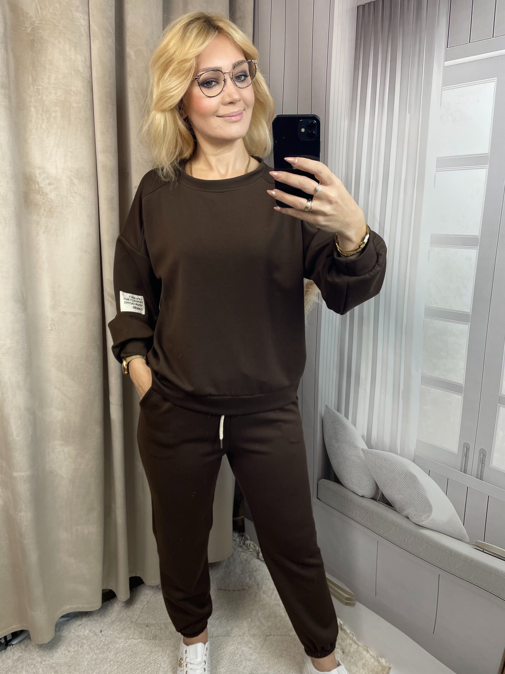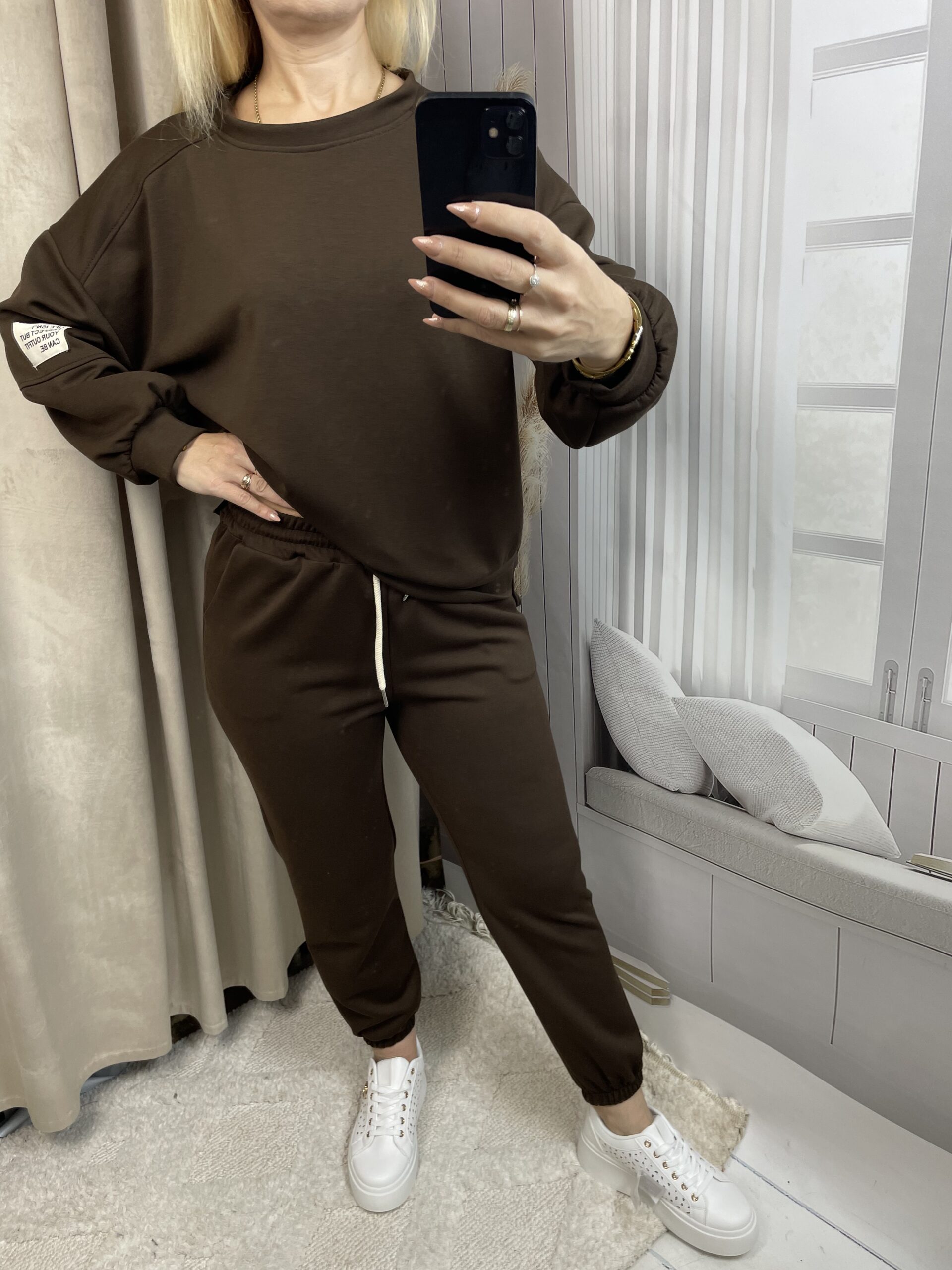 Dwuczęściowy komplet dresowy idealnie sprawdzi się na jesienne dni. Ten komplet to doskonały wybór dla kobiet, które cenią sobie wygodę i modny wygląd. W skład zestawu wchodzi luźna bluza , oraz klasyczne spodnie zakończone ściągaczem i wygodną gumą w talii która, pozwoli na dopasowanie ich do swojej figury. Ten model wyróżnia się nowoczesny krojem i doskonałą jakością. Ten komplet jest nie tylko wygodny i praktyczny, ale również idealny dla kobiet, które lubią wyrażać siebie przez swoje ubrania.