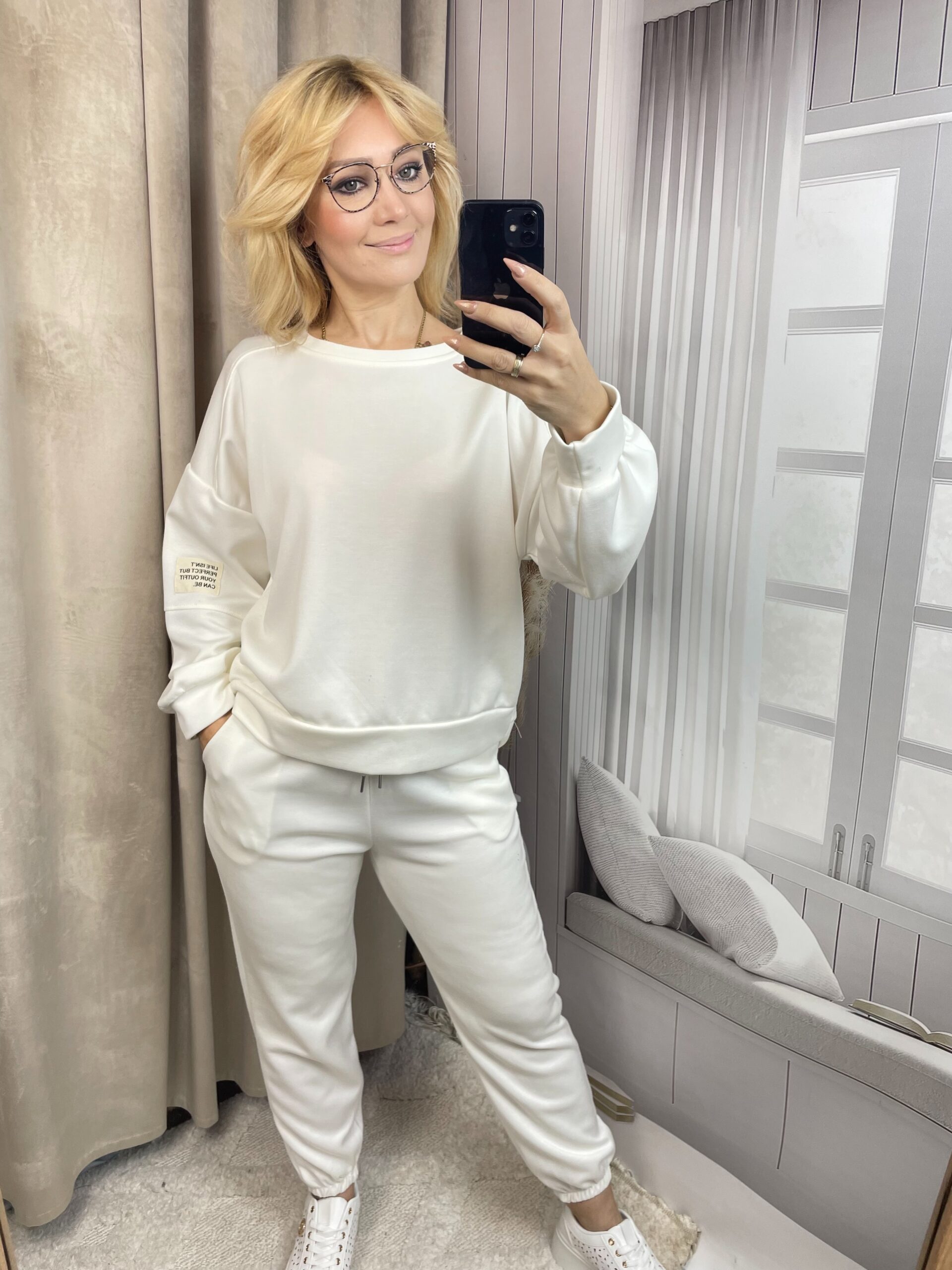 Dwuczęściowy komplet dresowy idealnie sprawdzi się na jesienne dni. Ten komplet to doskonały wybór dla kobiet, które cenią sobie wygodę i modny wygląd. W skład zestawu wchodzi luźna bluza , oraz klasyczne spodnie zakończone ściągaczem i wygodną gumą w talii która, pozwoli na dopasowanie ich do swojej figury. Ten model wyróżnia się nowoczesny krojem i doskonałą jakością. Ten komplet jest nie tylko wygodny i praktyczny, ale również idealny dla kobiet, które lubią wyrażać siebie przez swoje ubrania.