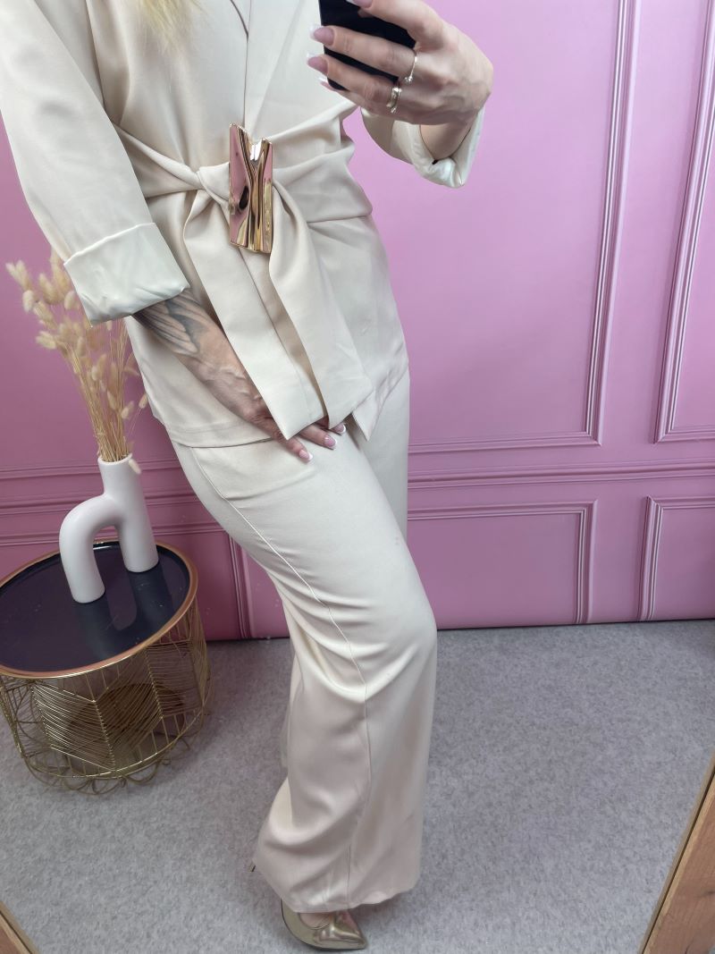 Garnitur Damski ze Złotą Klamrą – Jasny Beż