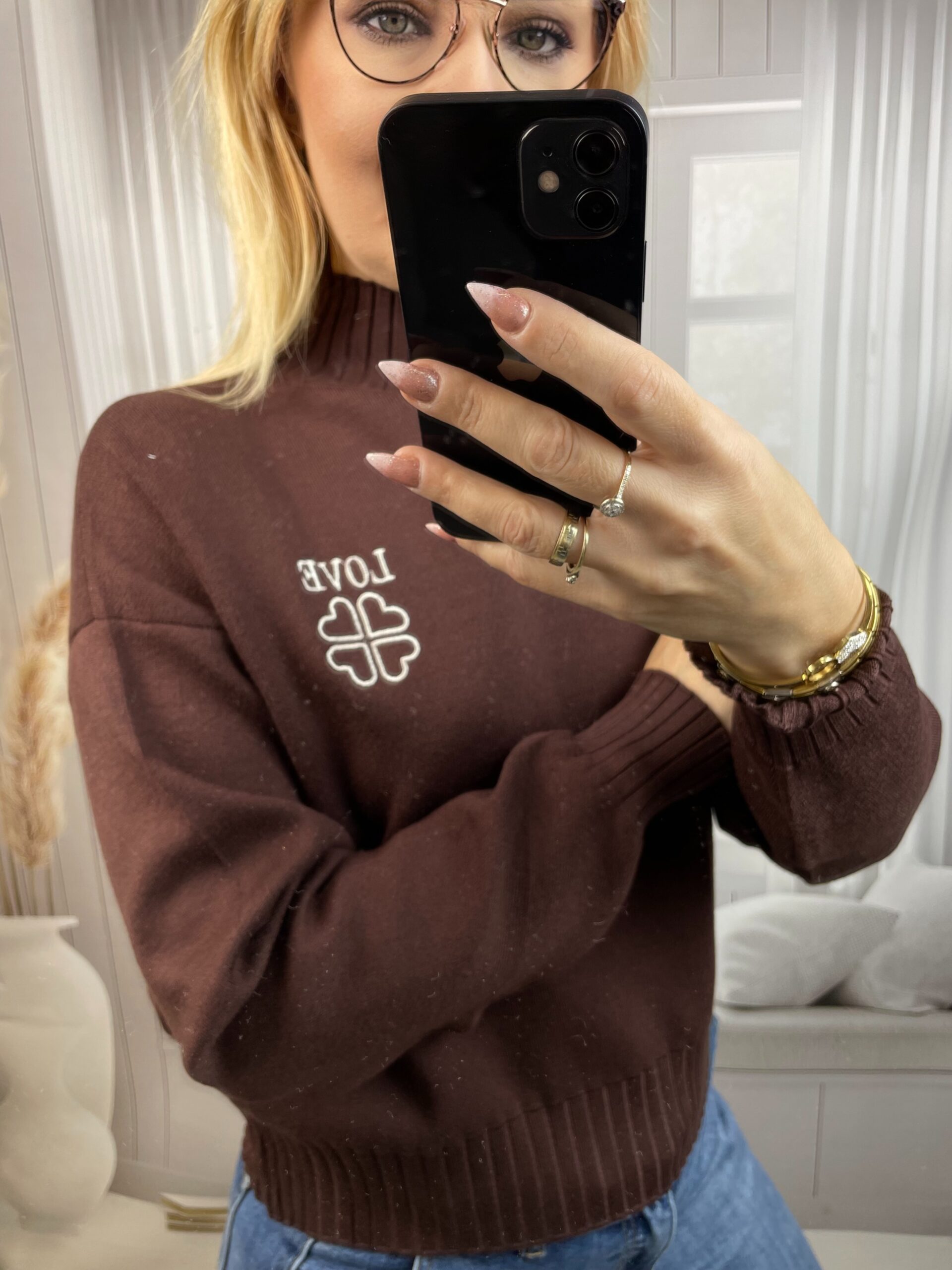 Golf z haftowaną koniczyną i napisem LOVE – subtelny detal, który robi różnicę