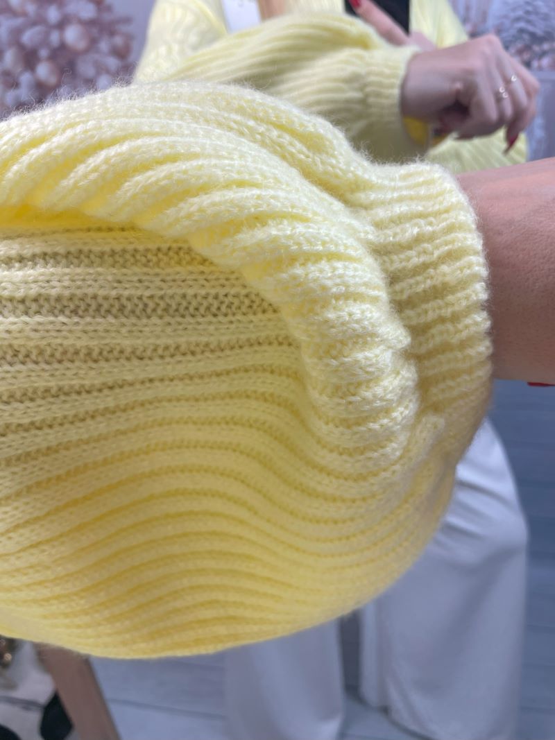 Golf Prążkowany z Rękawem Dzwonkowym Pastelowy Żółty