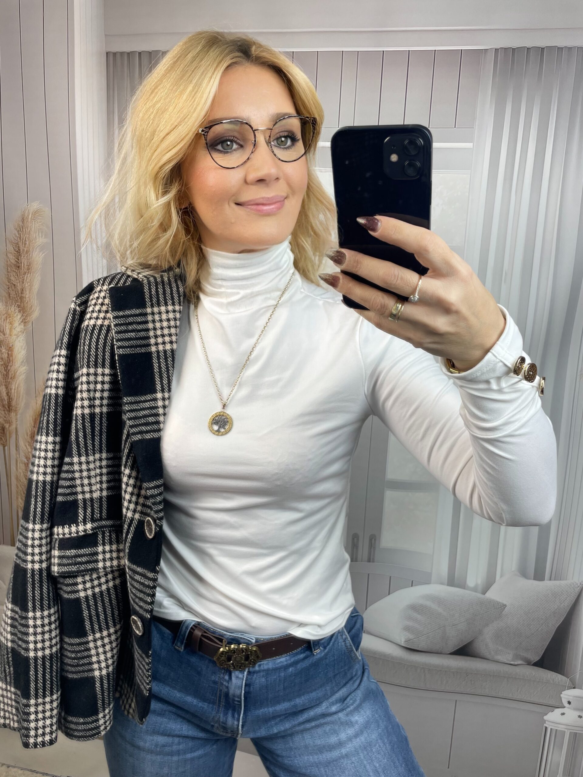 Ten golf to jeden z tych modeli, które zawsze ratują dzień. Dopasowany krój pięknie podkreśla sylwetkę, ale dzięki rozciągliwej tkaninie zostaje przy tym wygodny i idealny do wielogodzinnego noszenia — w pracy, w podróży, na spotkaniach i podczas codziennego zabieganego rytmu.