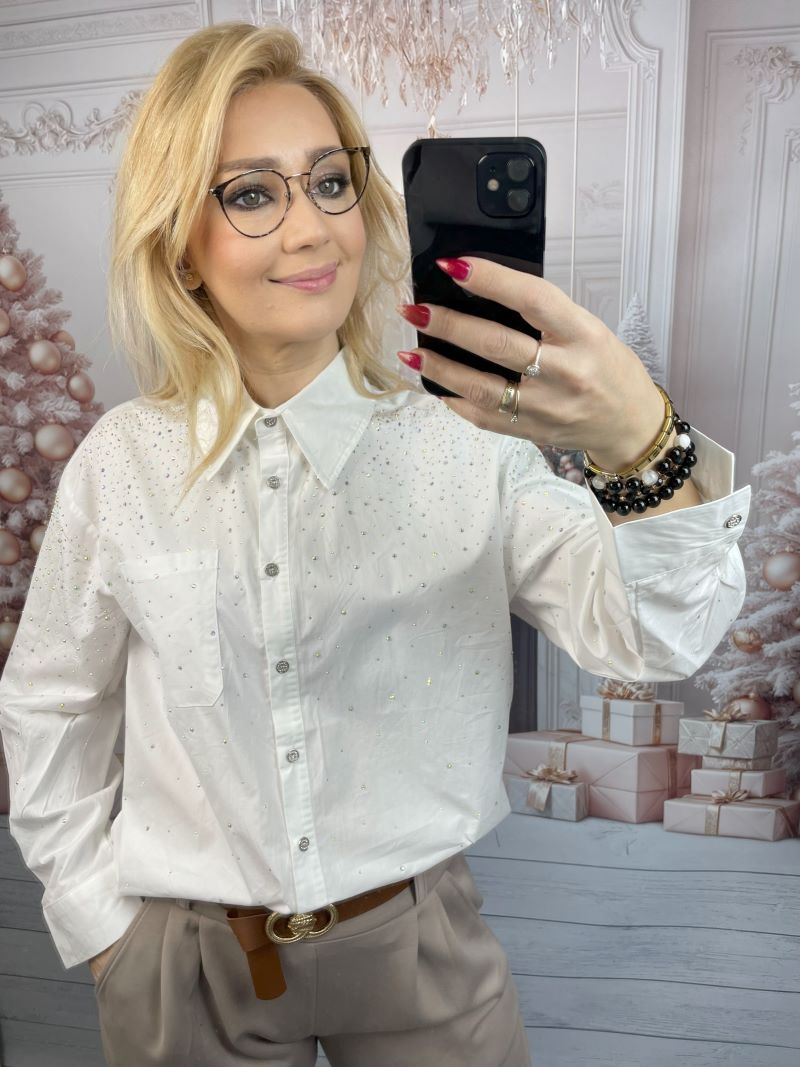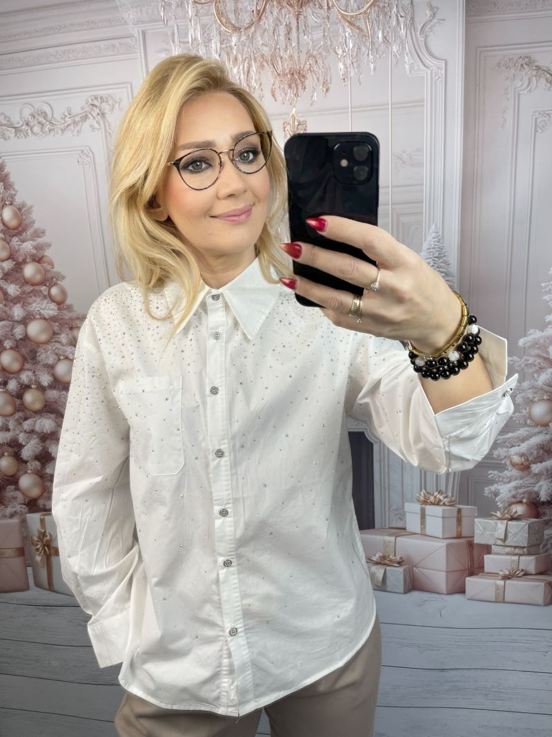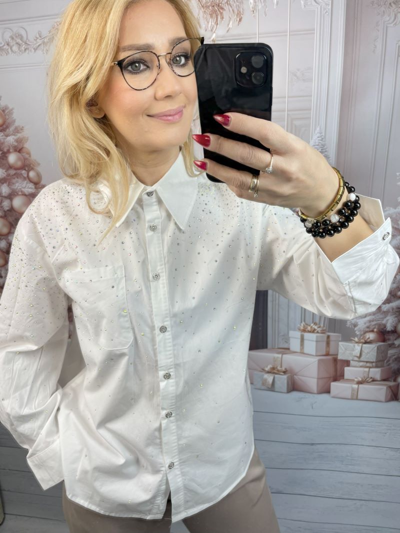 Klasyczna koszula damska z cyrkoniami – 100% bawełny