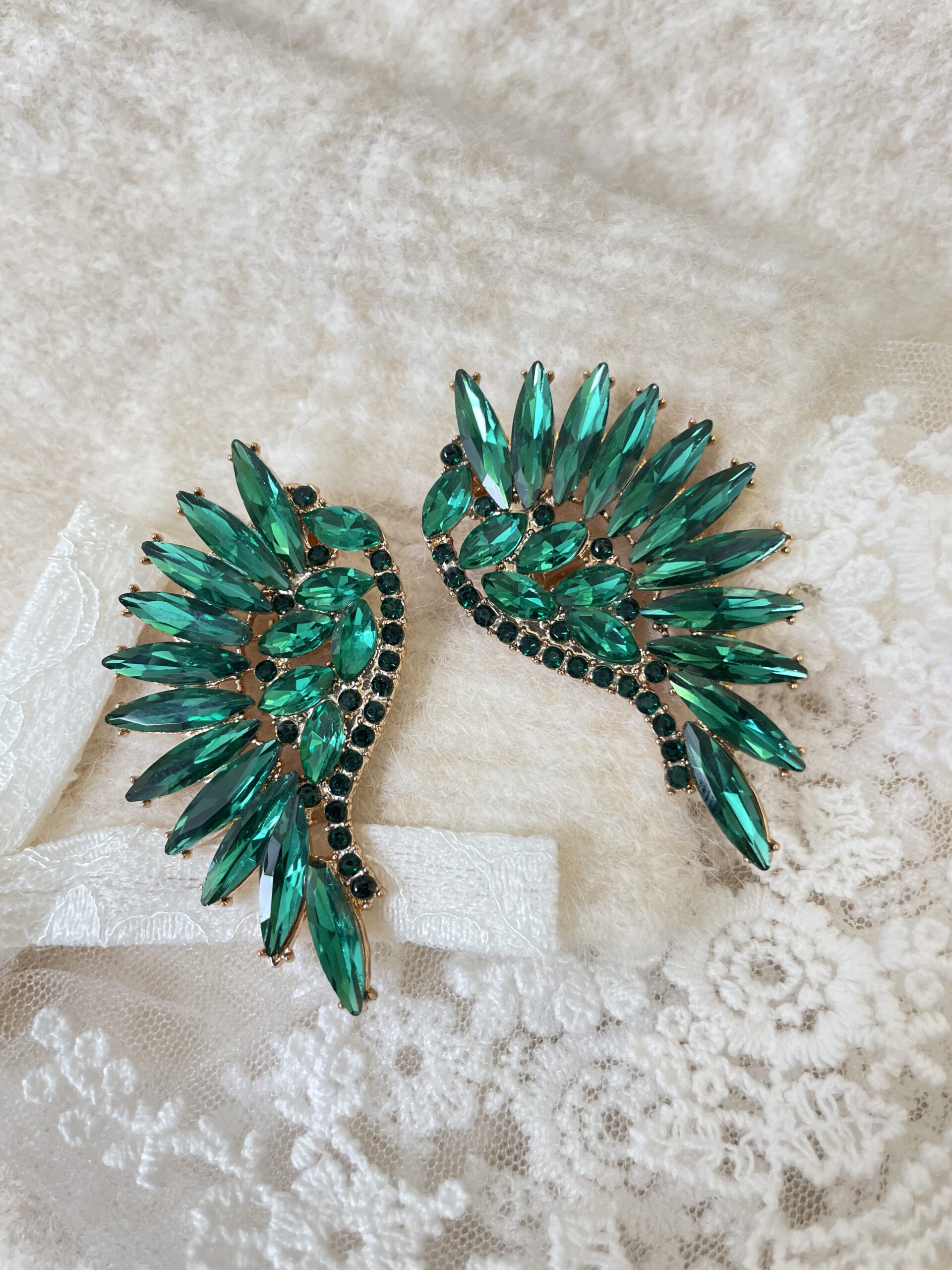 Klipsy Cyrkoniowe Skrzydła – Zielone