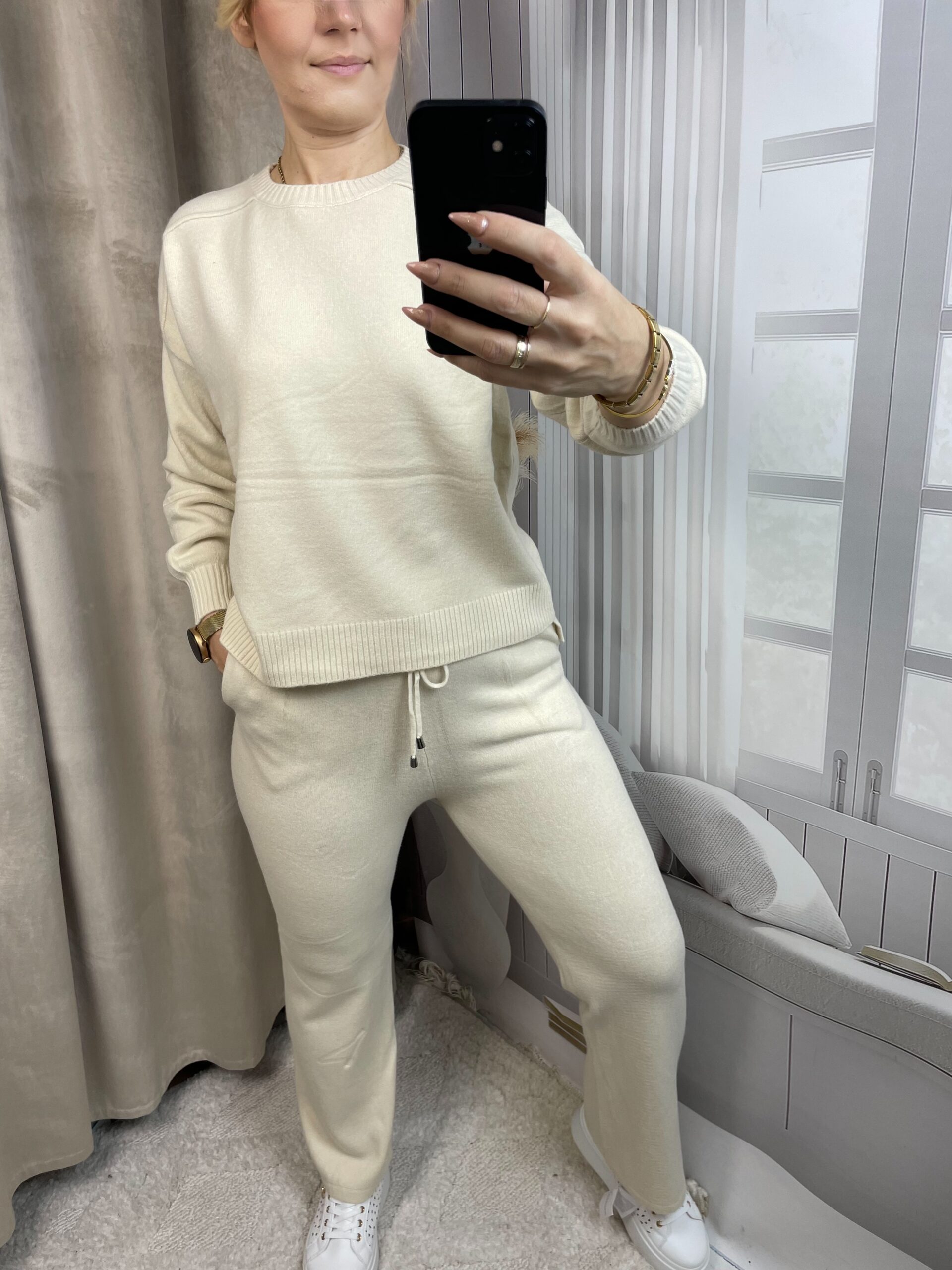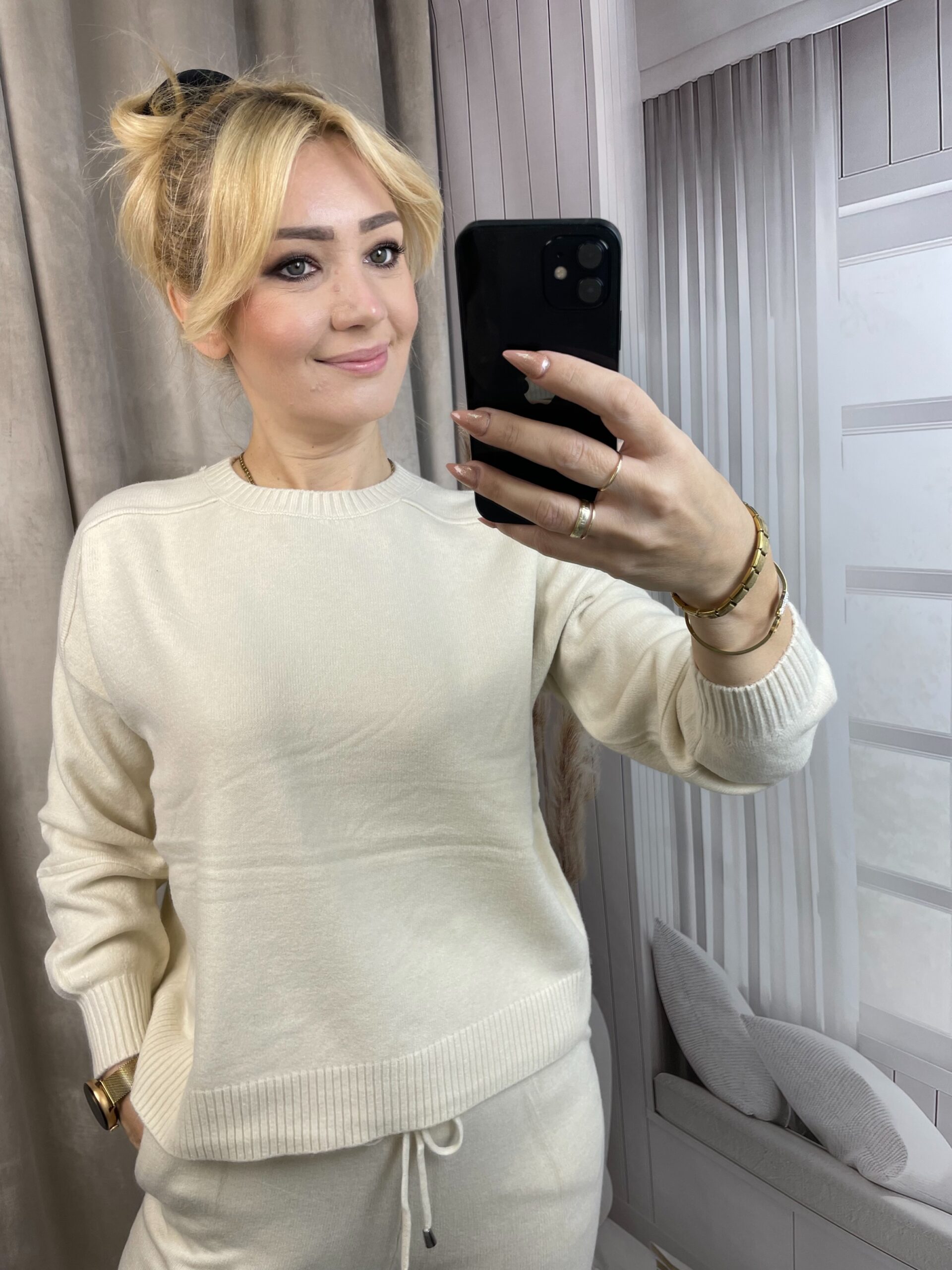 Dwuczęściowy komplet z miękkiej i elastycznej dzianiny, który idealnie sprawdzi się na jesienne dni. Ten komplet to doskonały wybór dla kobiet, które cenią sobie wygodę i modny wygląd. W skład zestawu wchodzi luźny sweter oraz spodnie typu szwedy na szerokiej gumie która,pozwoli na dopasowanie ich do swojej figury. Ten model wyróżnia się klasycznym krojem i doskonałą jakością. Ten komplet jest nie tylko wygodny i praktyczny, ale również idealny dla kobiet, które lubią wyrażać siebie przez swoje ubrania.