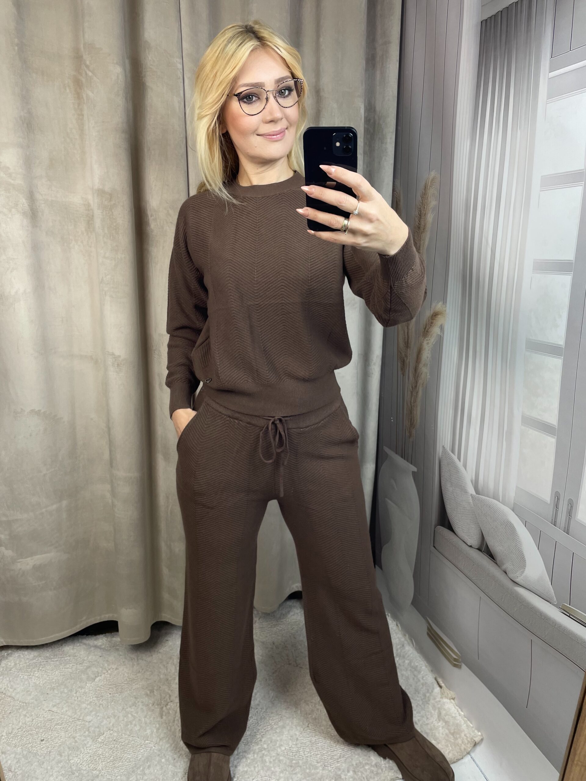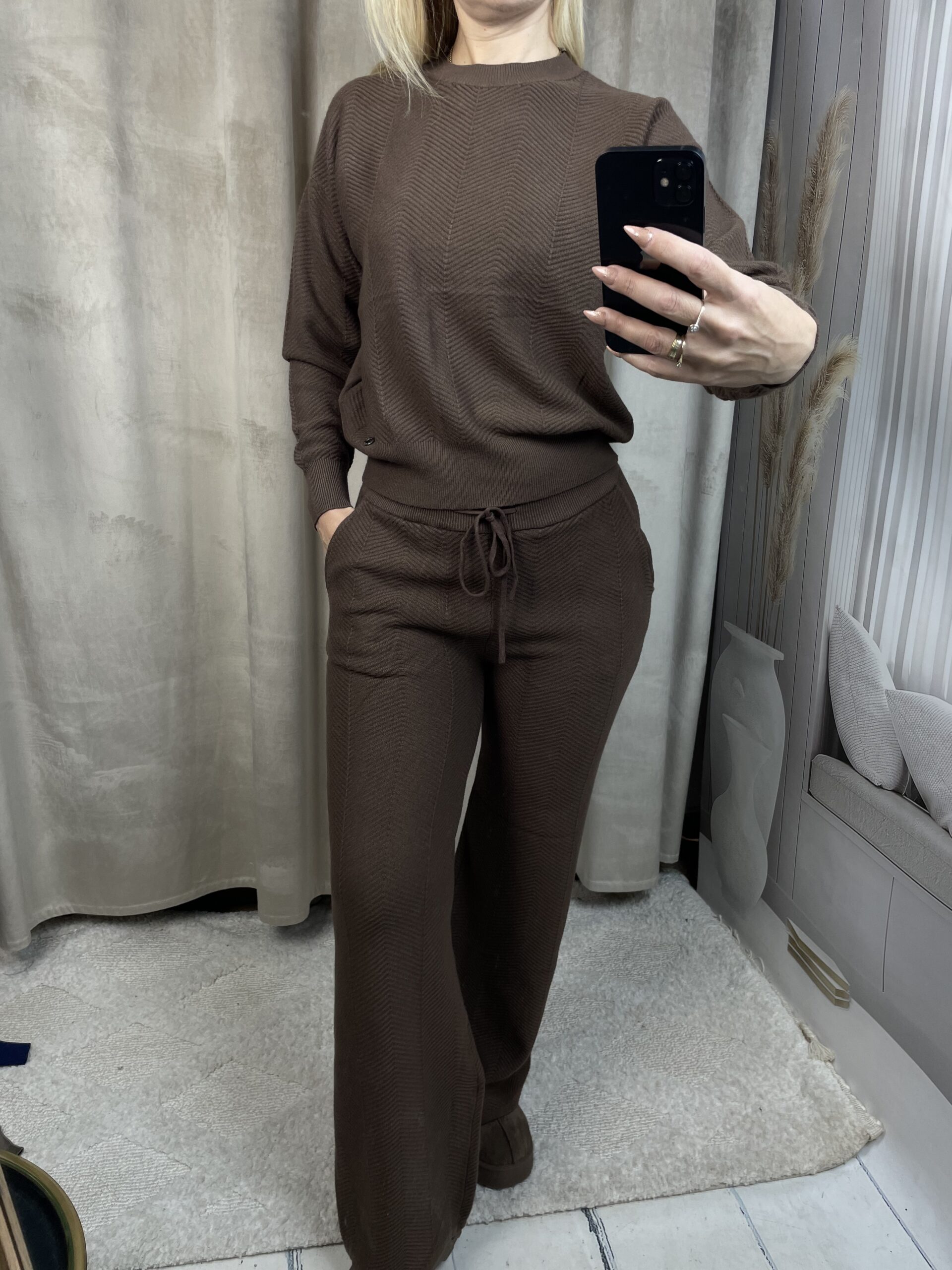 Komplet Dzianinowy Prążkowanie – Jodełka Czekolada S/M