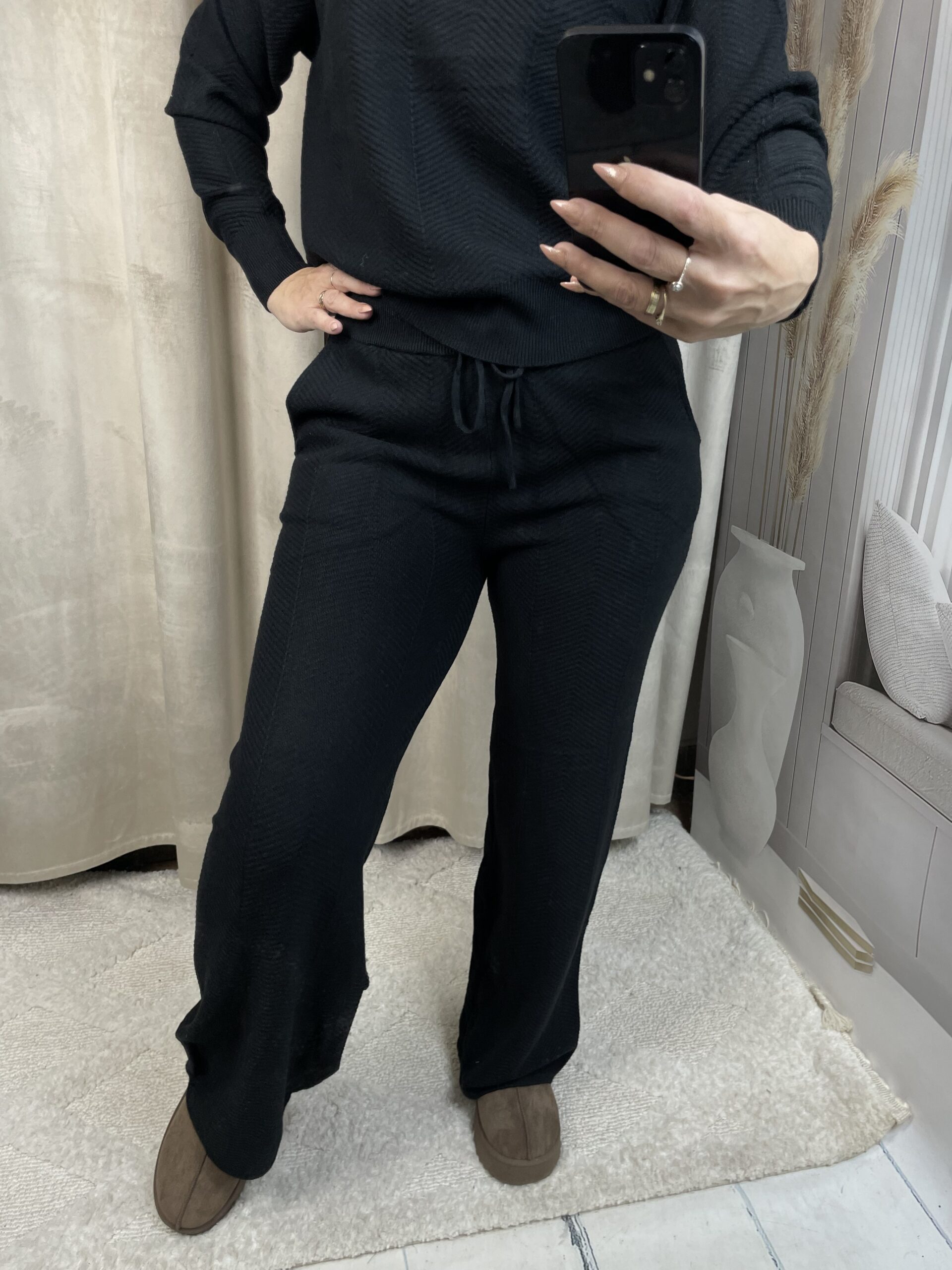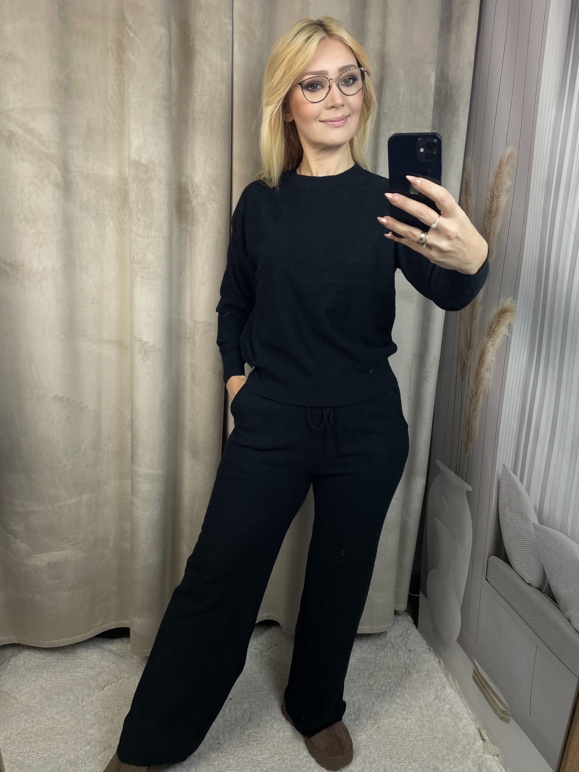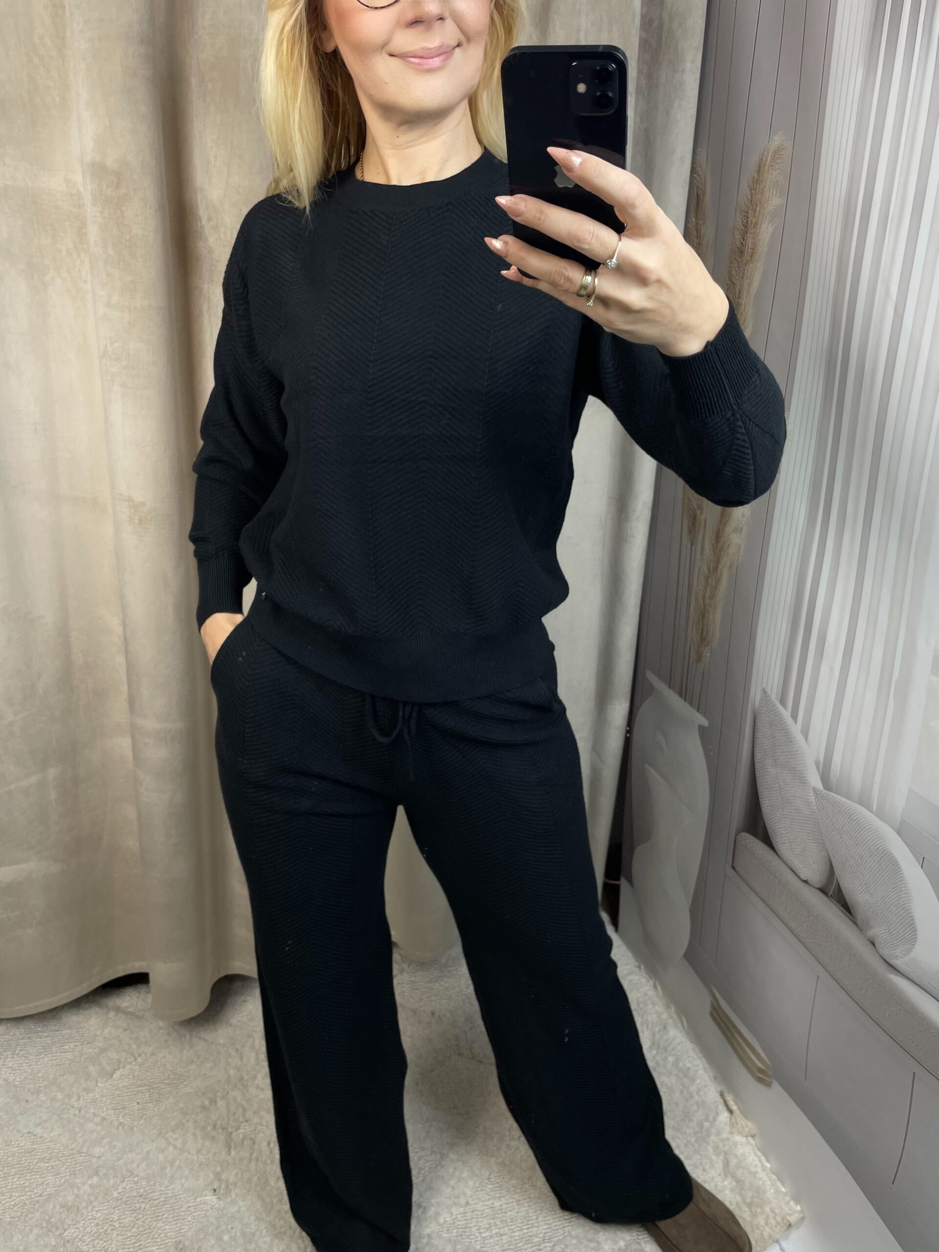 Komplet Dzianinowy Prążkowanie – Jodełka Jasny Czarny L/XL