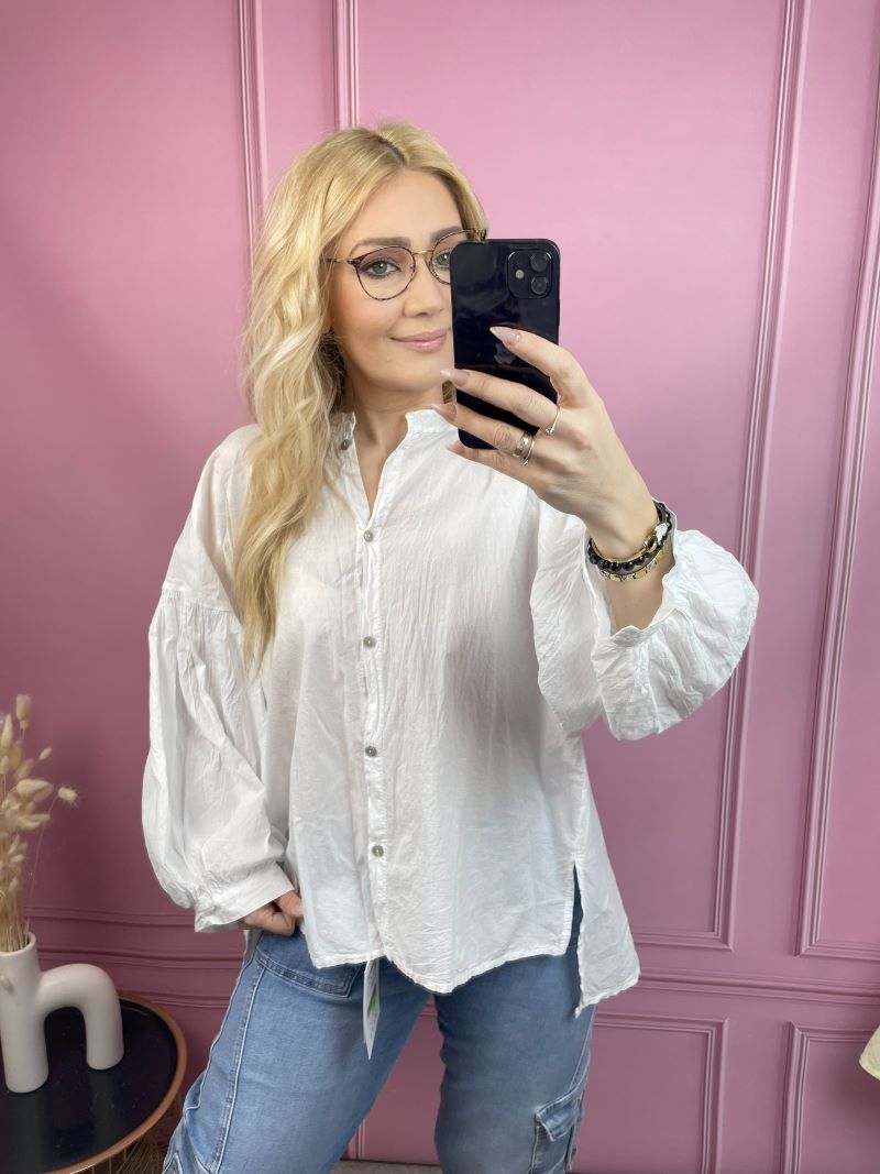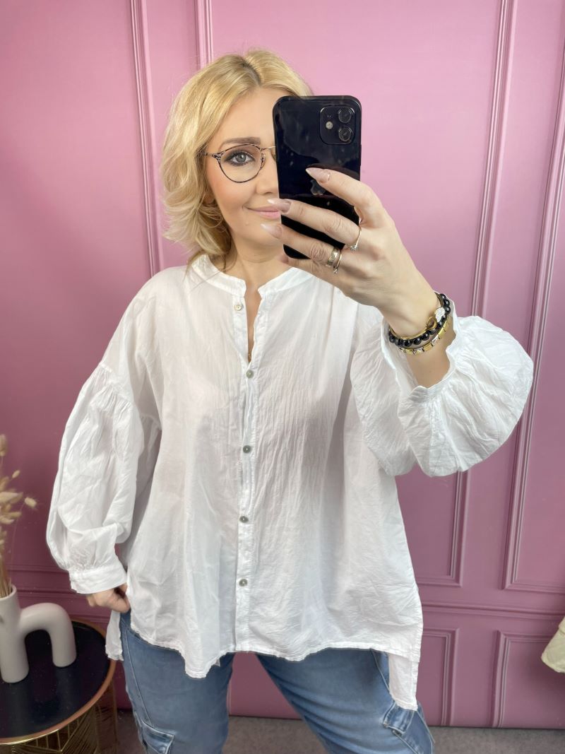 Koszula Bawełniana z Balonowym Rękawem – Biała