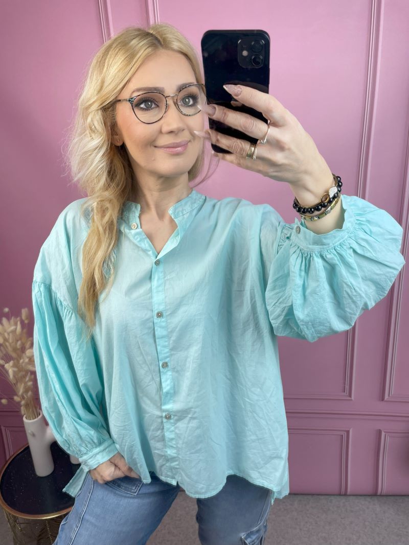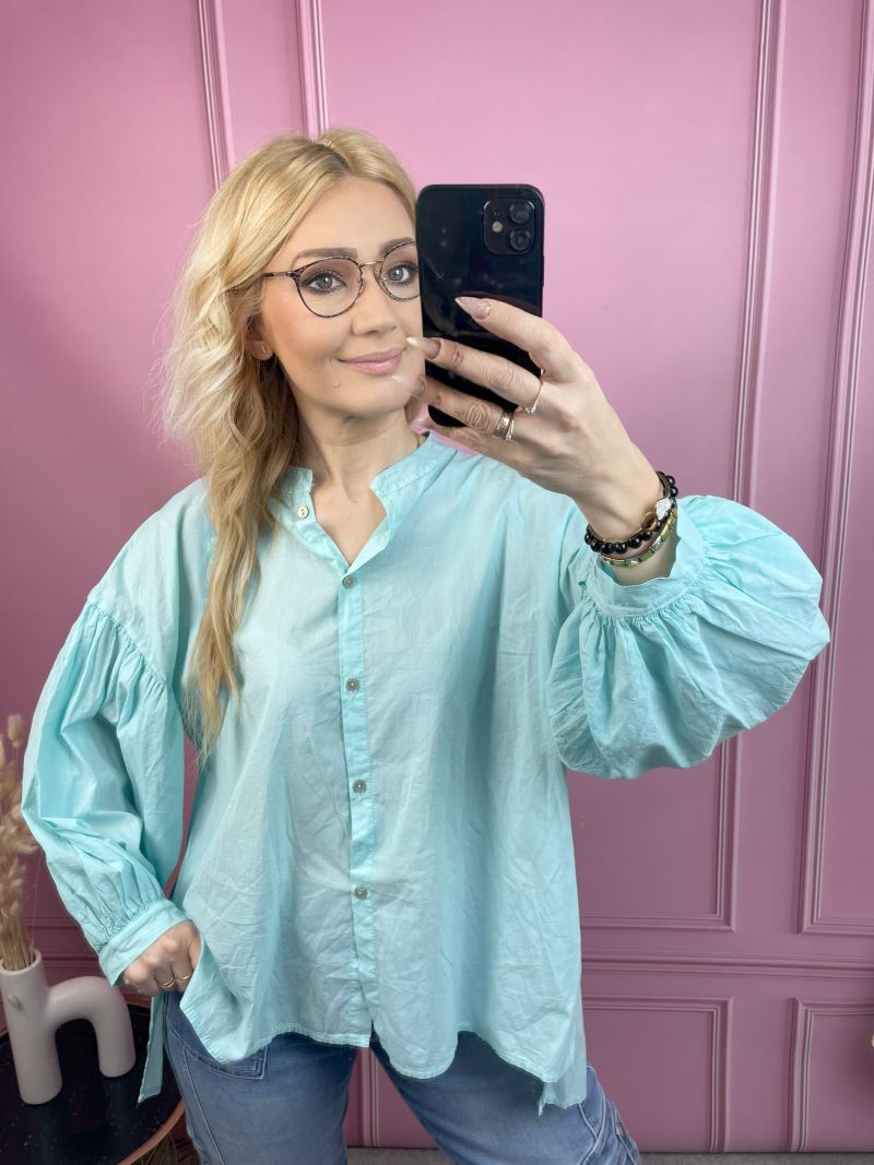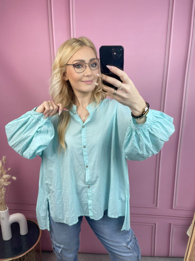Koszula Bawełniana z Balonowym Rękawem - Mięta - Kozar