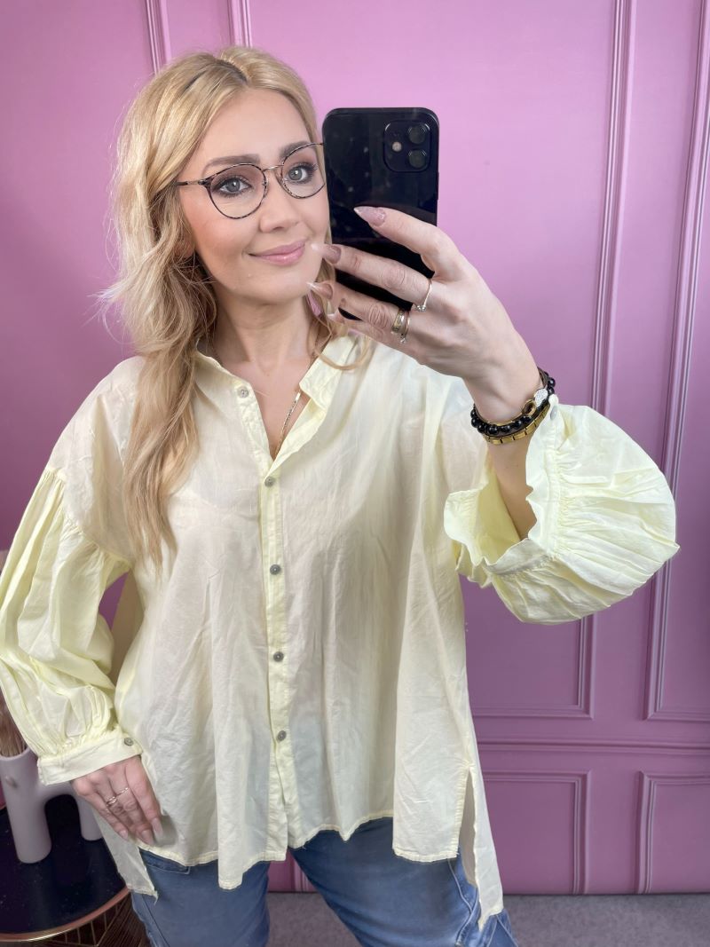 Koszula Bawełniana z Balonowym Rękawem – Żółta