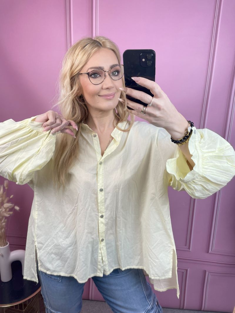 Koszula Bawełniana z Balonowym Rękawem - Żółta - Kozar