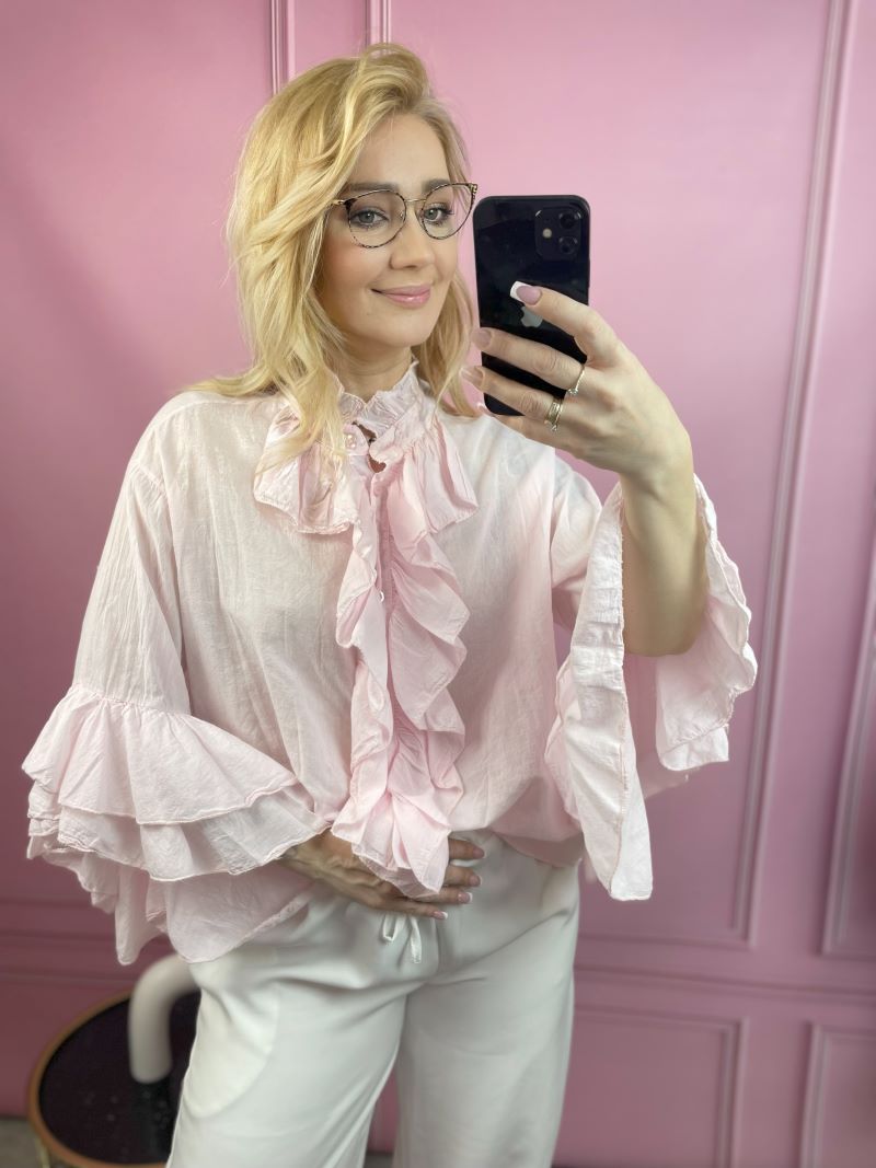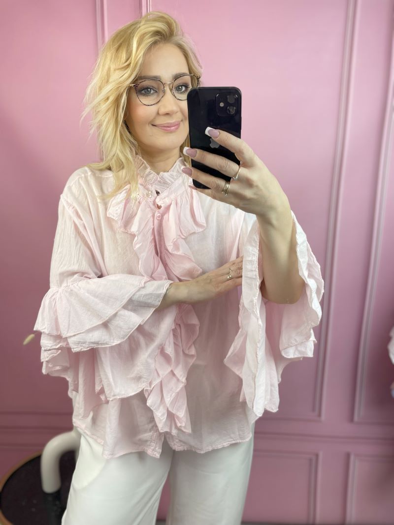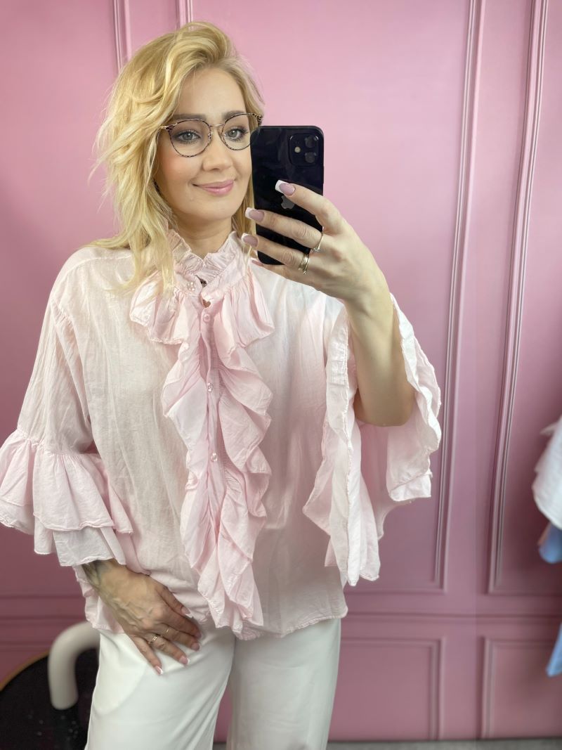 Koszula Bawełniana z Żabotem – Pudrowy Róż