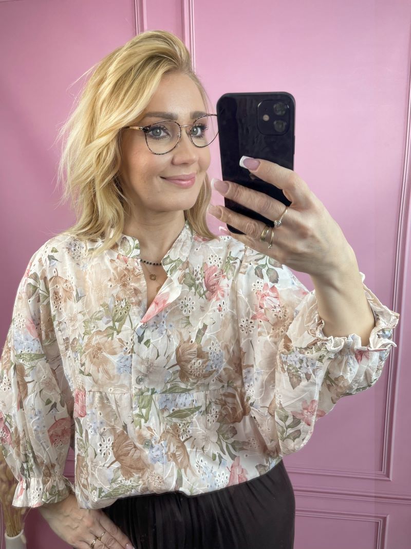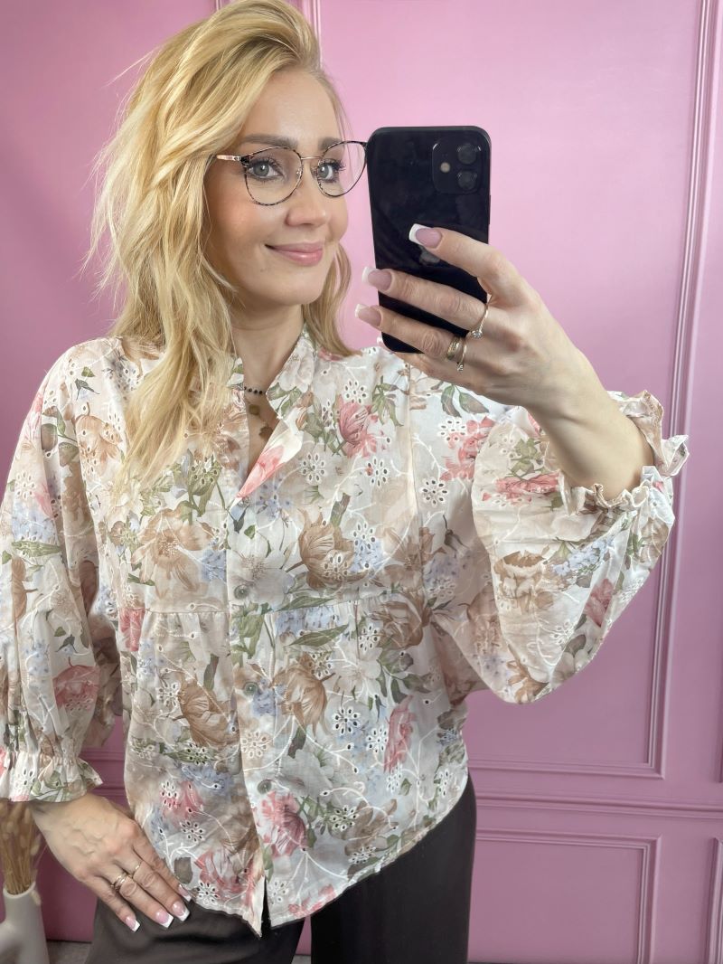 Koszula Haftowana w Kwiaty – Beż