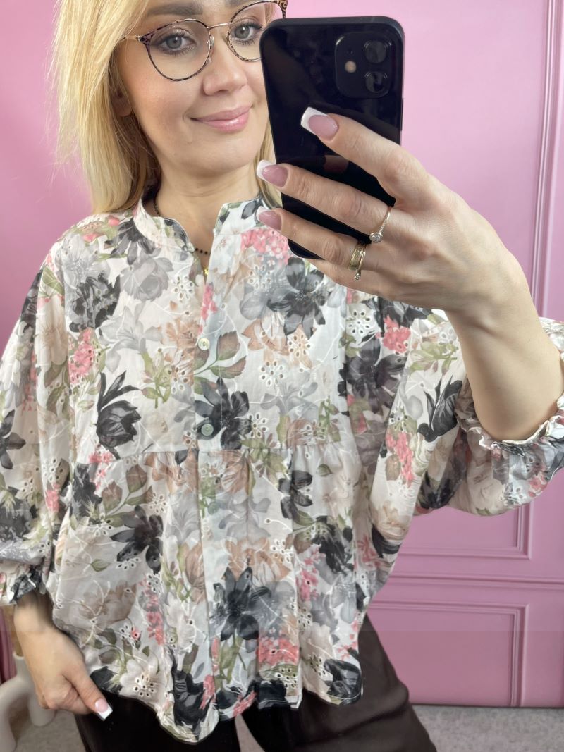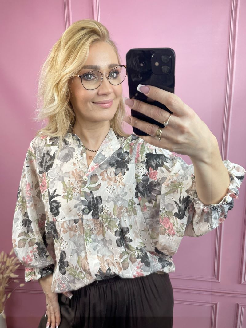 Prawdziwą gwiazdą tej koszuli są jednak balonowe rękawy, które dodają objętości i modowego wyrazu. Zakończone delikatną falbanką, tworzą efekt lekkości i kobiecej finezji, dzięki czemu każda stylizacja nabiera unikalnego charakteru.