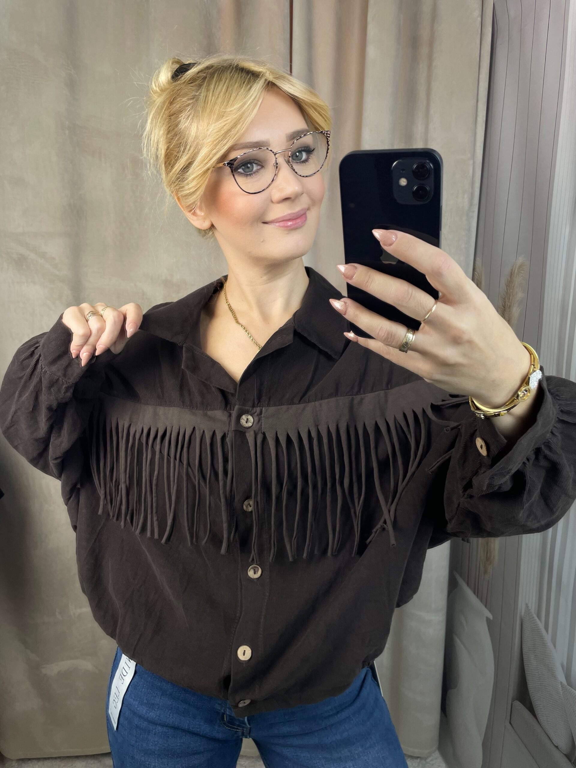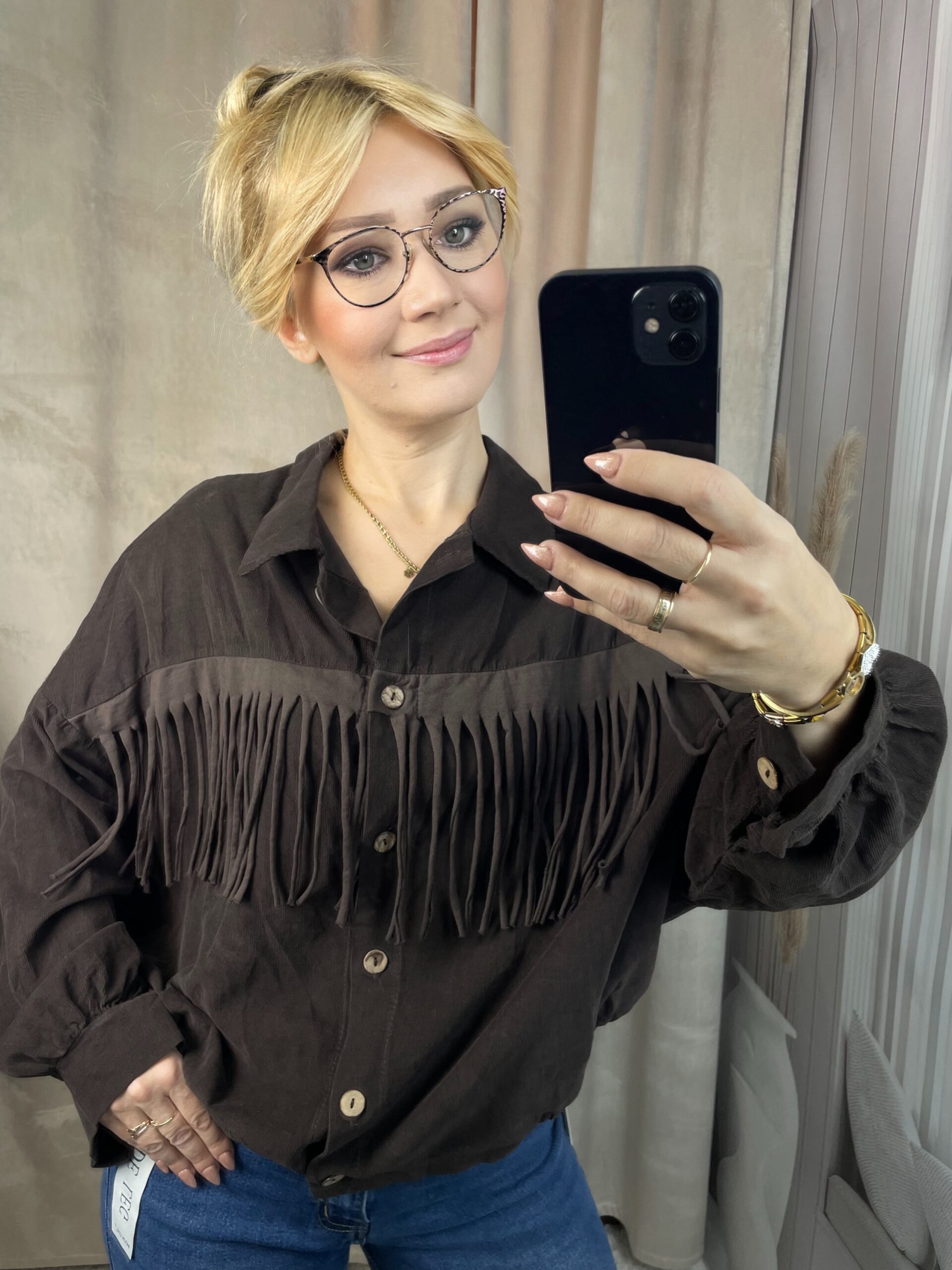 Koszula Sztruksowa z Frędzlami Czekolada