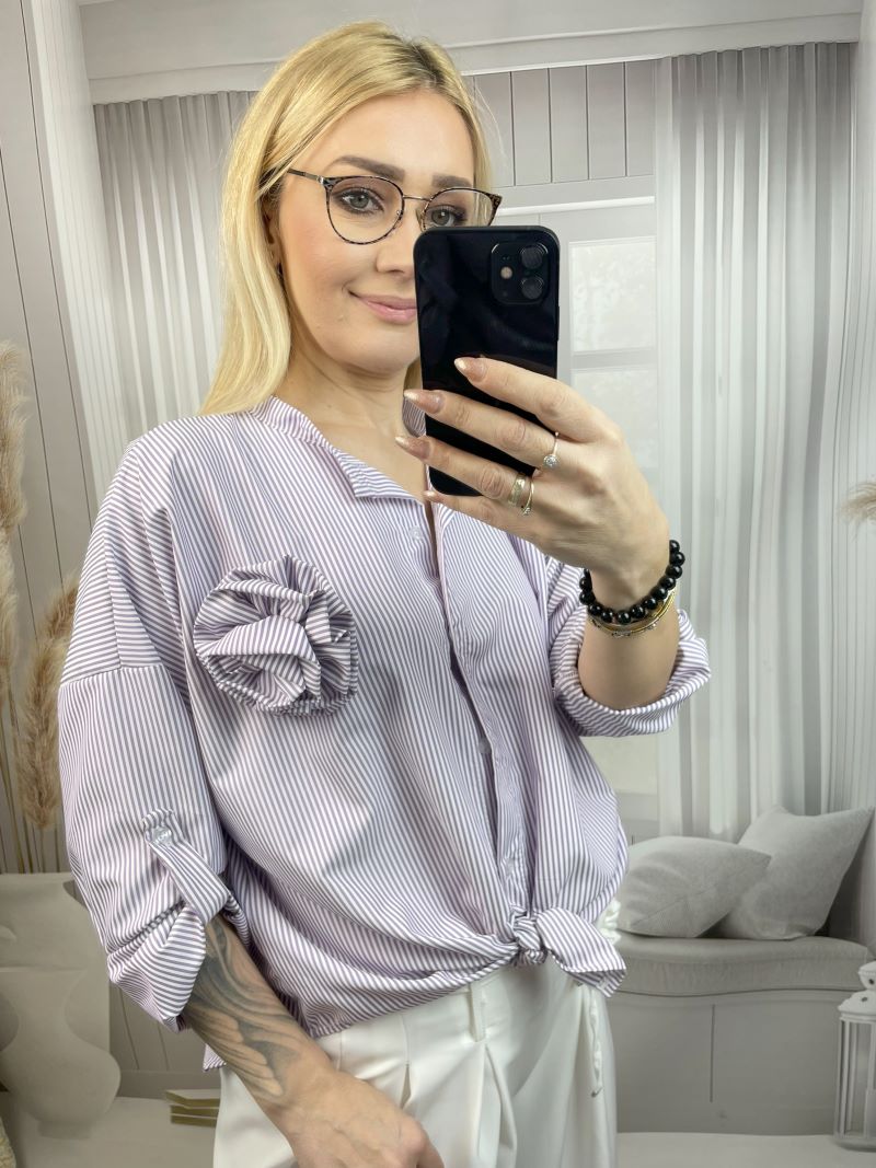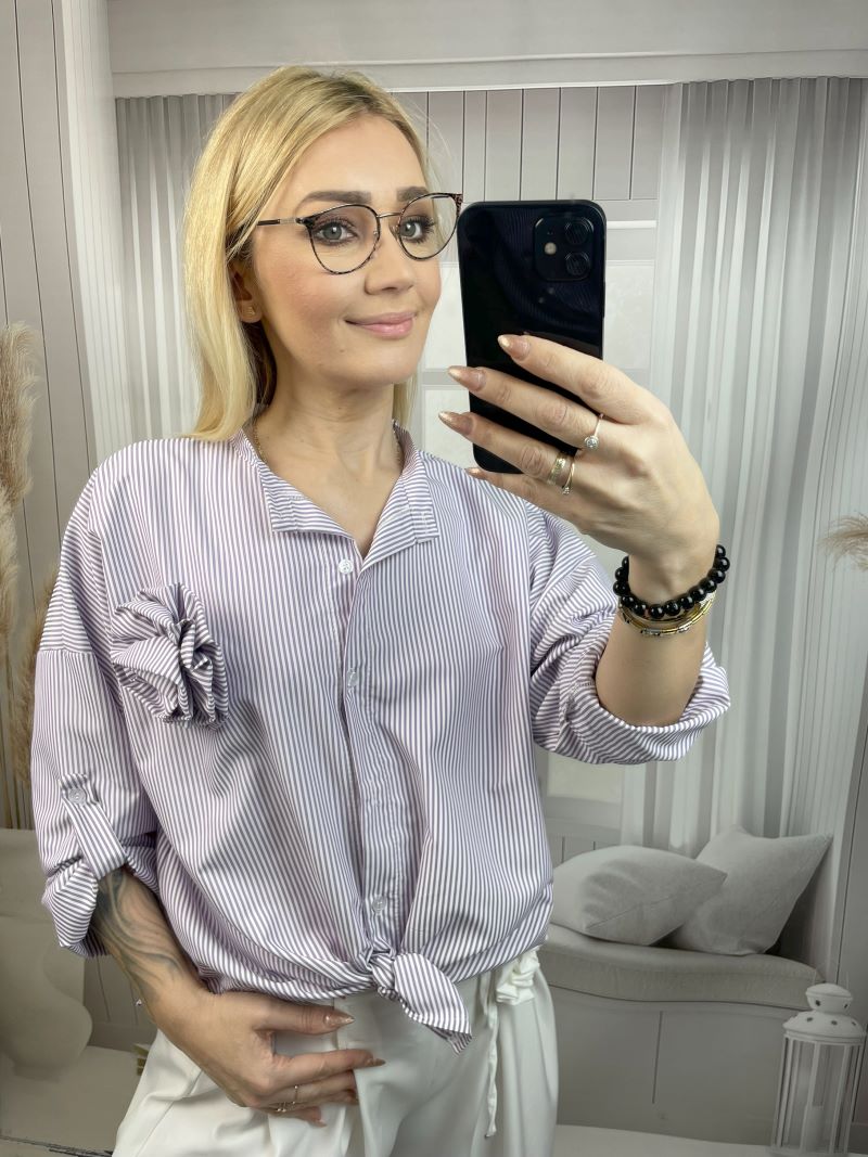 Koszula w Paski z Broszką z Różaną Fiolet - Kozar