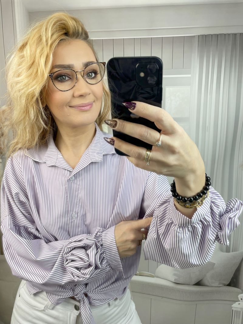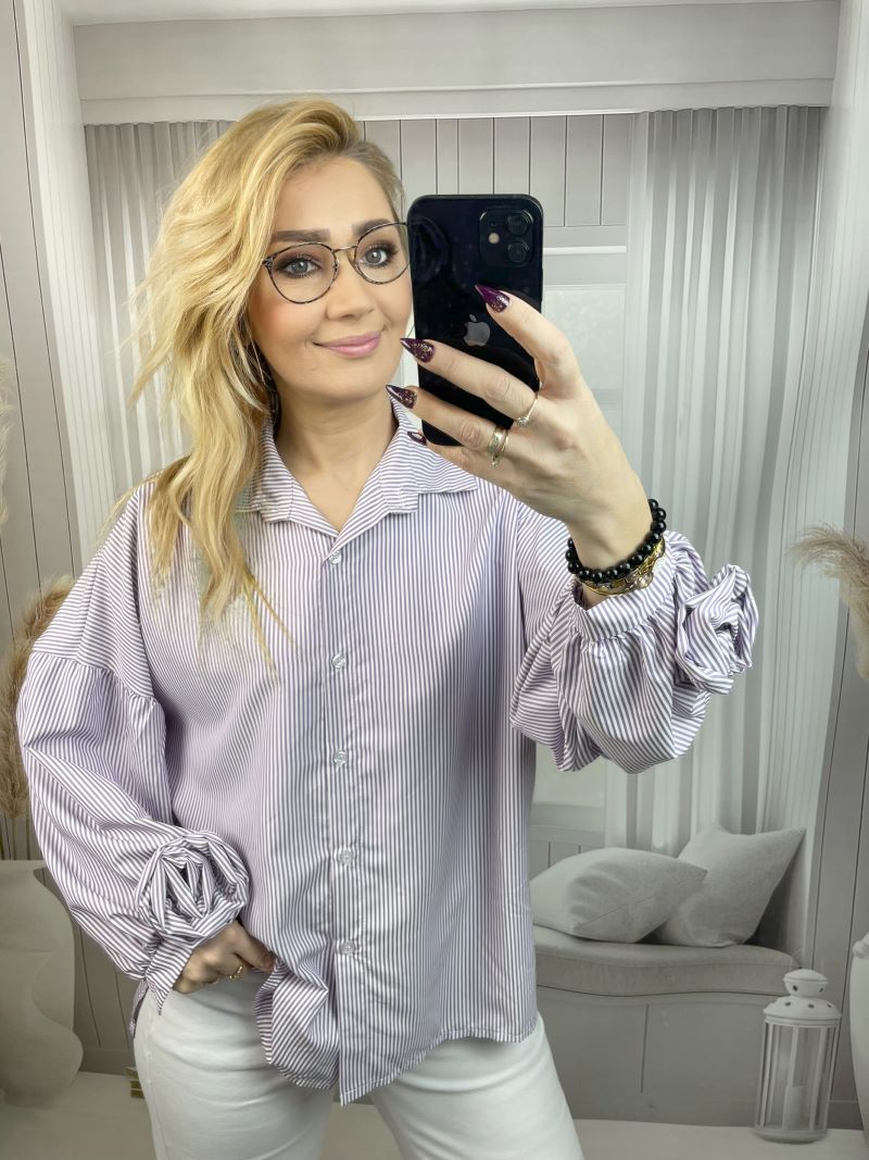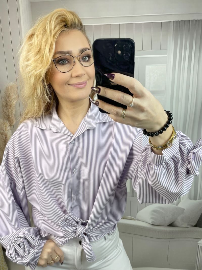 Koszula w Paski z Różą Na Mankiecie Fiolet - Kozar