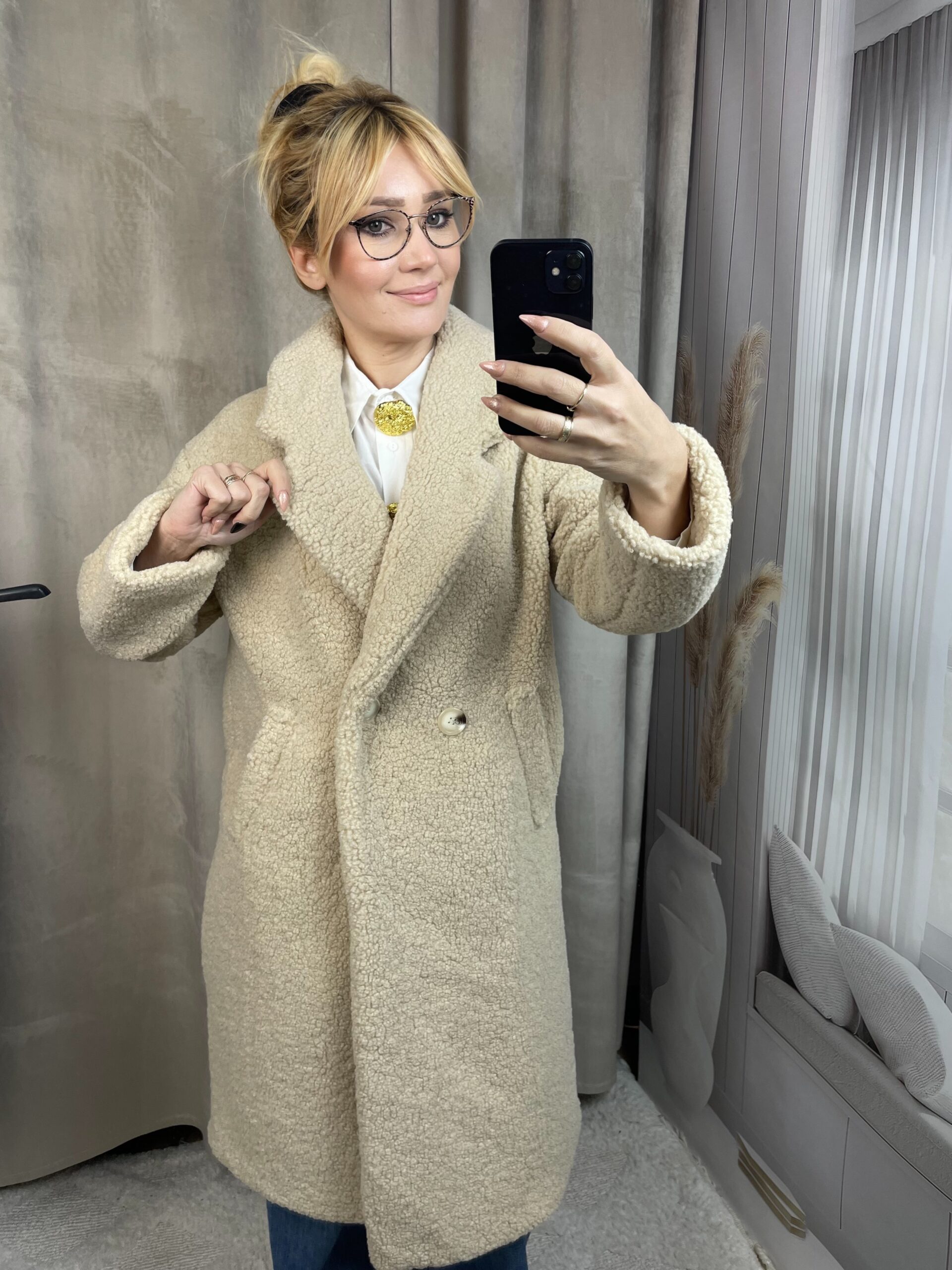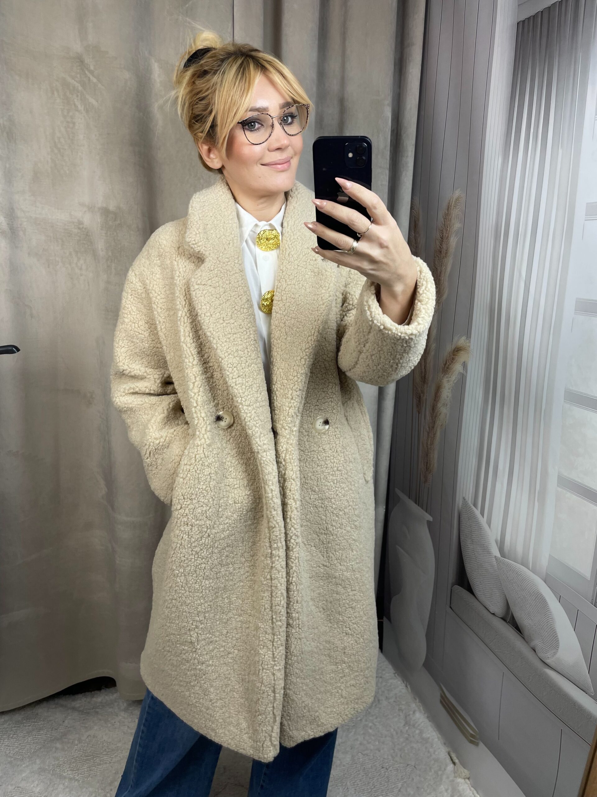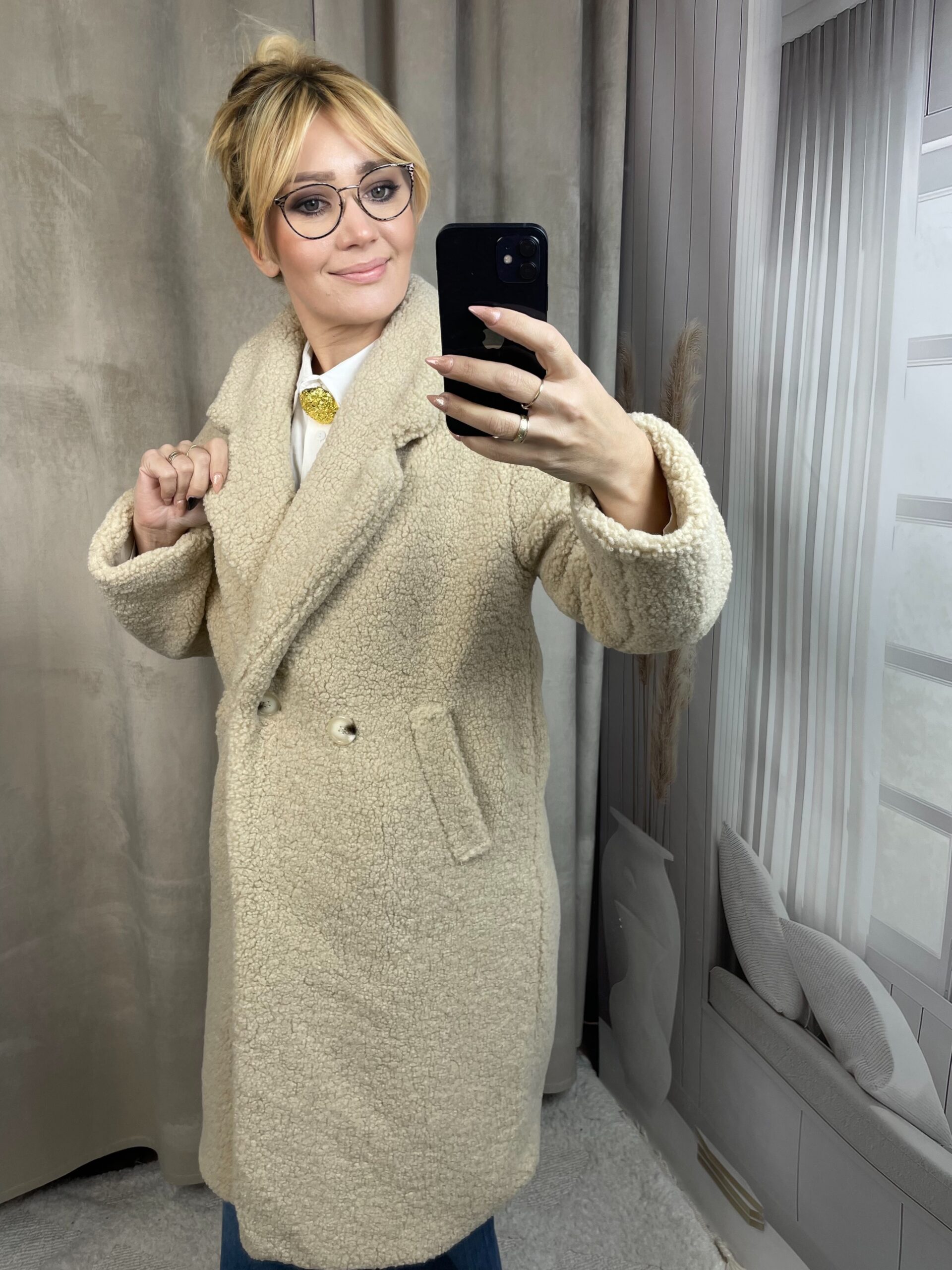 Ten mięciutki kożuszek, który jest bardzo lekki i ciepły , jest  idealnym wyborem na  jesienne chłodniejsze dni. Kożuszek zdobi klasyczny kołnierz , oraz niezwykle dbale wykonany splot tkaniny . Ten model zapinany jest na guzik w formie dwurzędówki , a po bokach znajdują się dwie poręczne kieszenie.