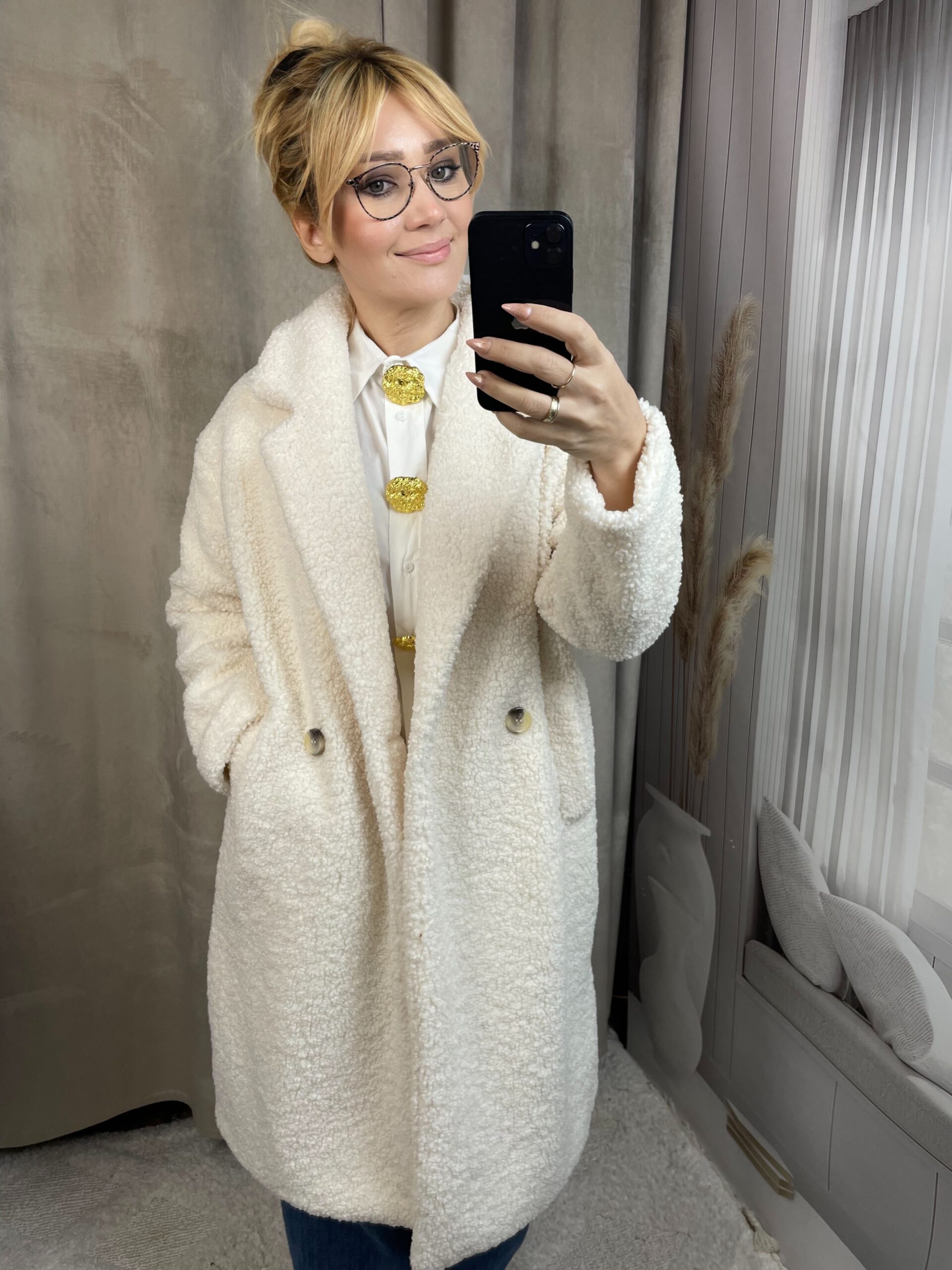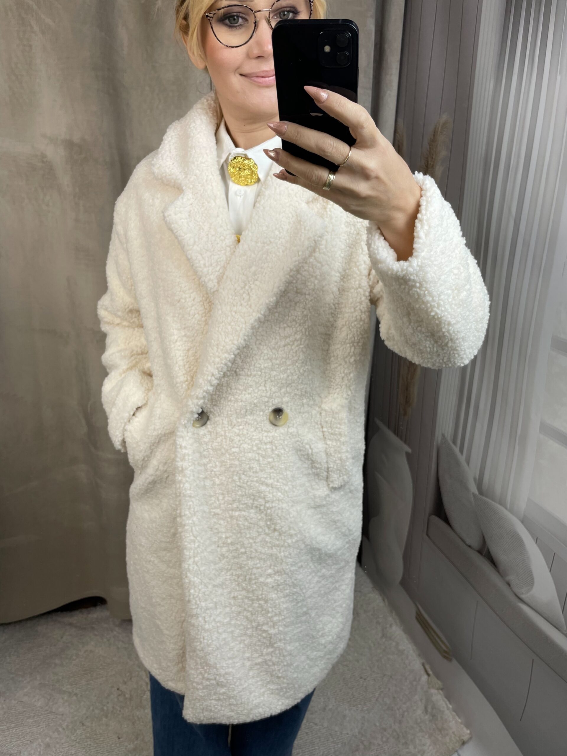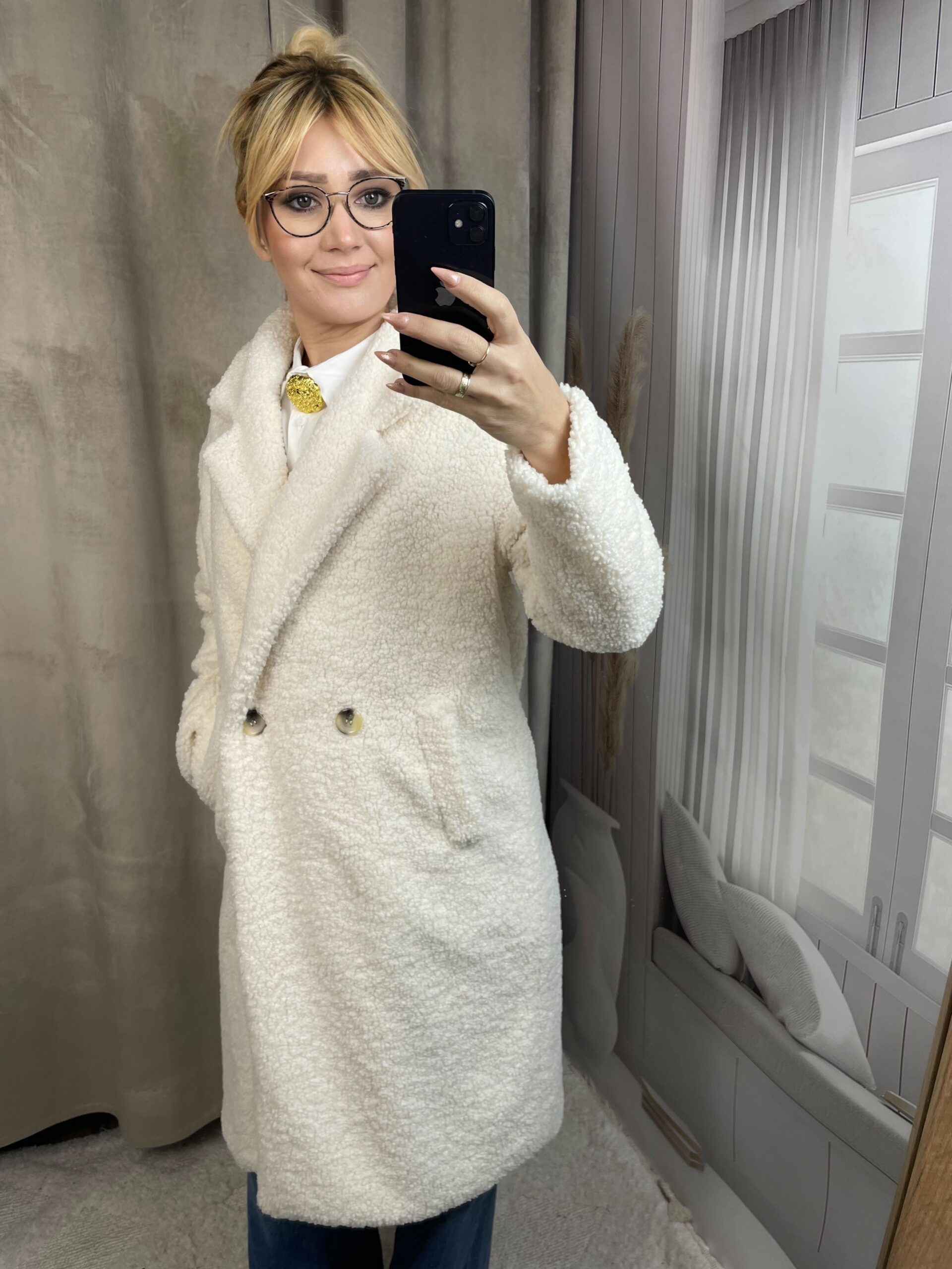 Ten mięciutki kożuszek, który jest bardzo lekki i ciepły , jest  idealnym wyborem na  jesienne chłodniejsze dni. Kożuszek zdobi klasyczny kołnierz , oraz niezwykle dbale wykonany splot tkaniny . Ten model zapinany jest na guzik w formie dwurzędówki , a po bokach znajdują się dwie poręczne kieszenie.