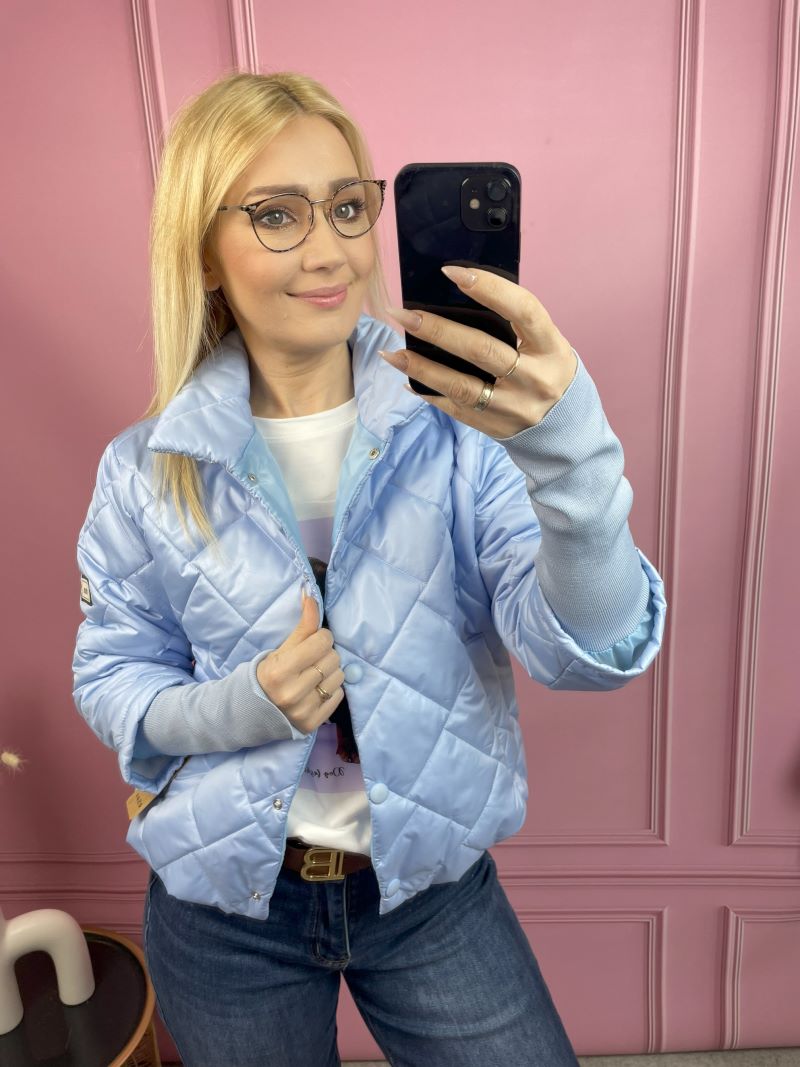 Kurtka Wiosenna Pikowana ze Stójką – Błękit