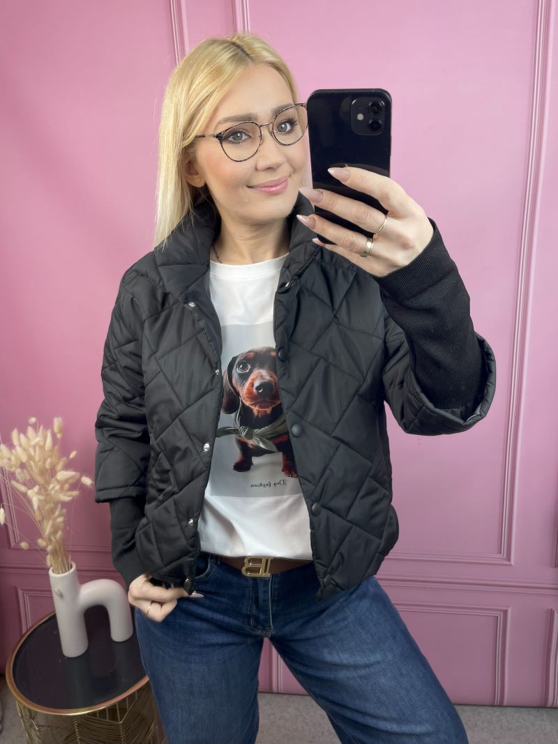 Kurtka Wiosenna Pikowana ze Stójką – Czarna