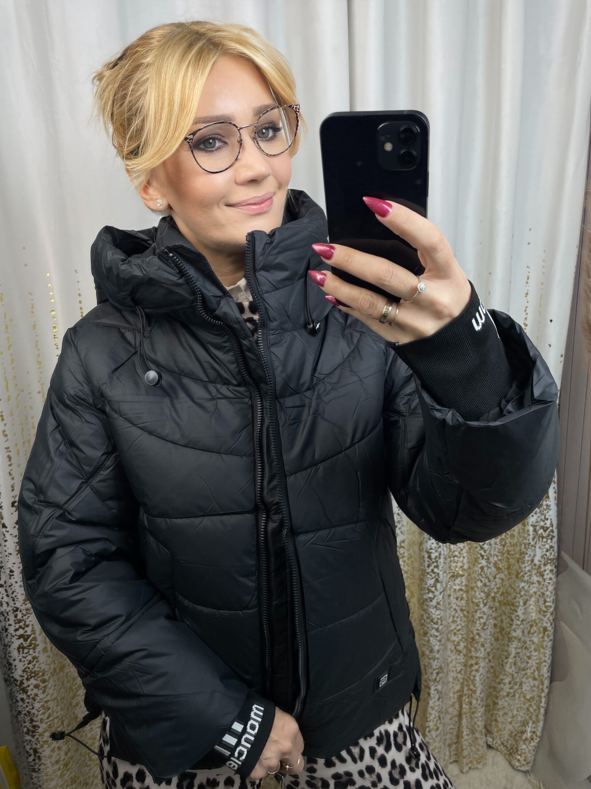 Sportowa kurtka zimowa, z logowanym ściągaczem wokół nadgarstka to idealny wybór na zimowe dni.Głównym i wyróżniającym atutem tej kurtki , jest delikatne pikowanie , logowany ściągacz i głęboki kaptur.
