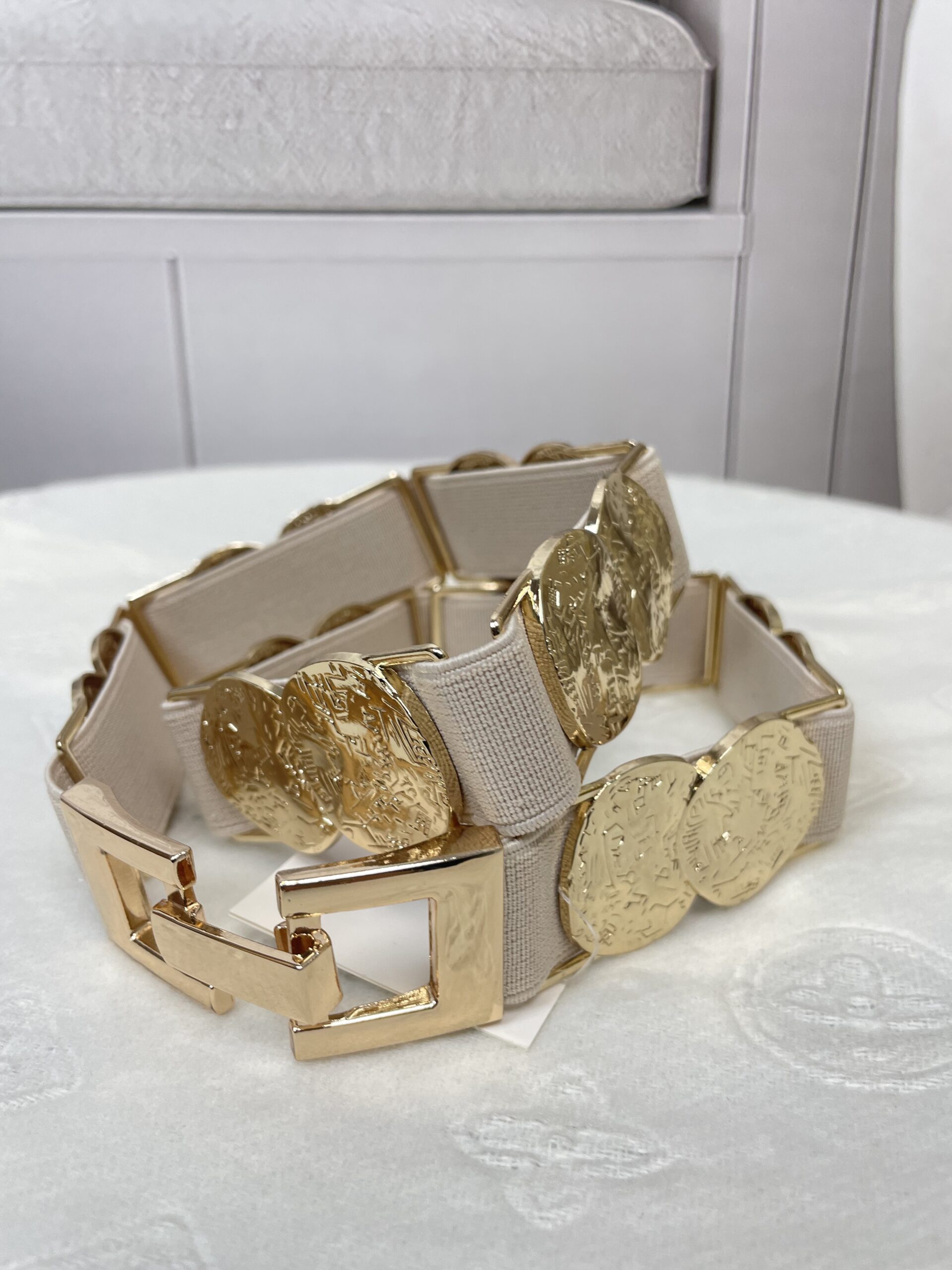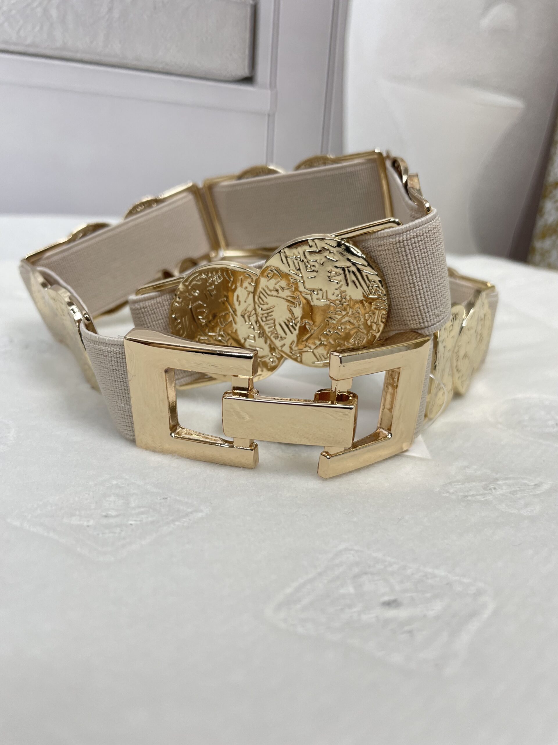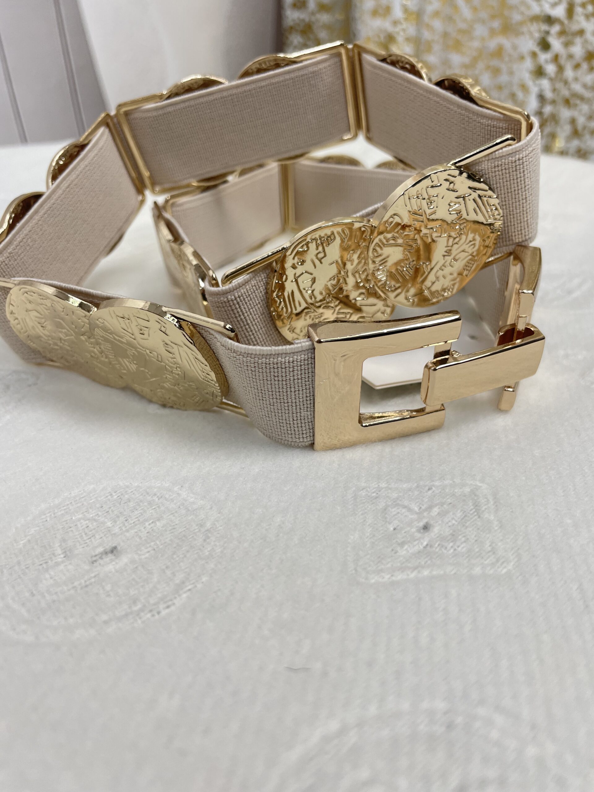 Ozdobny Pasek Monetki na Gumie Beż