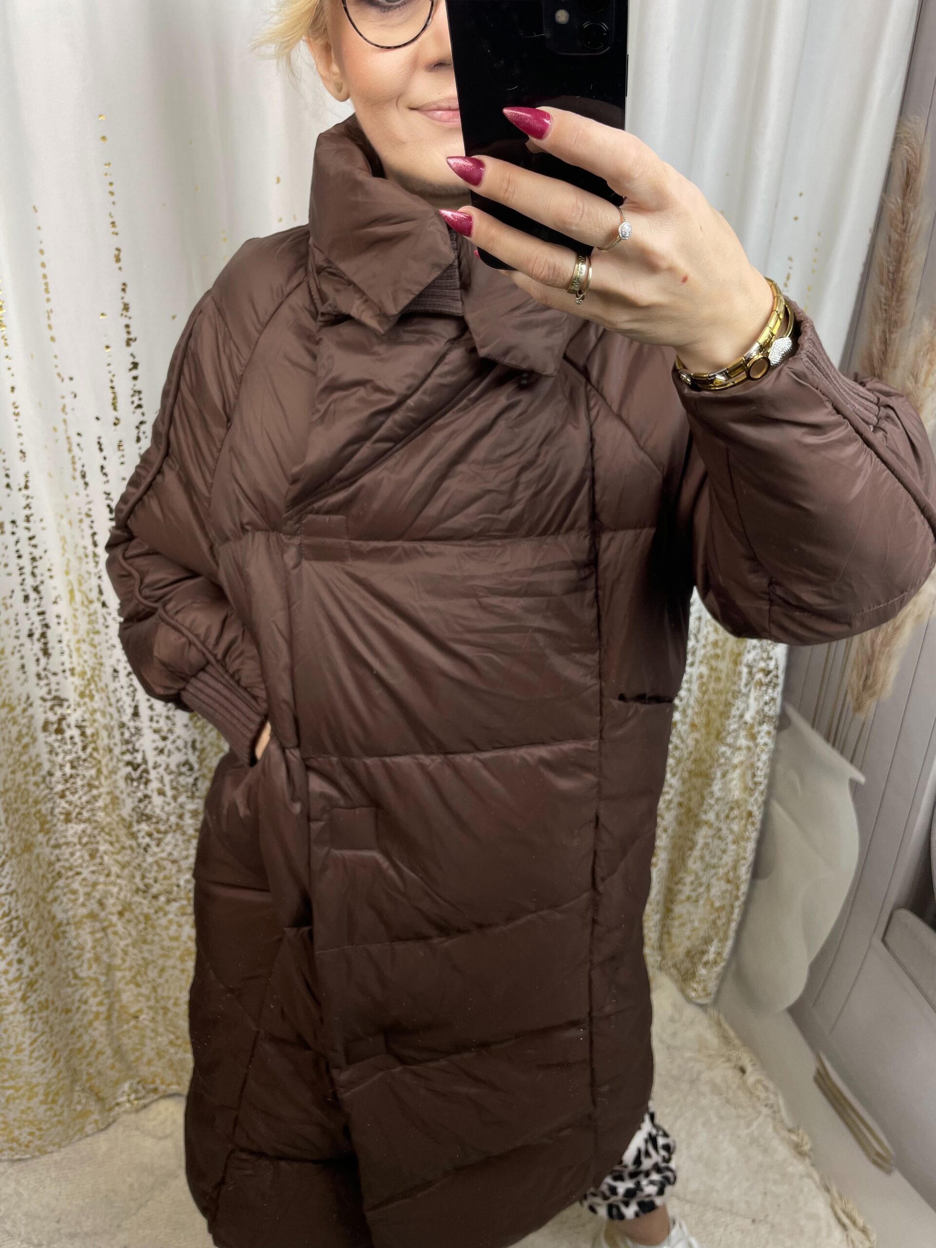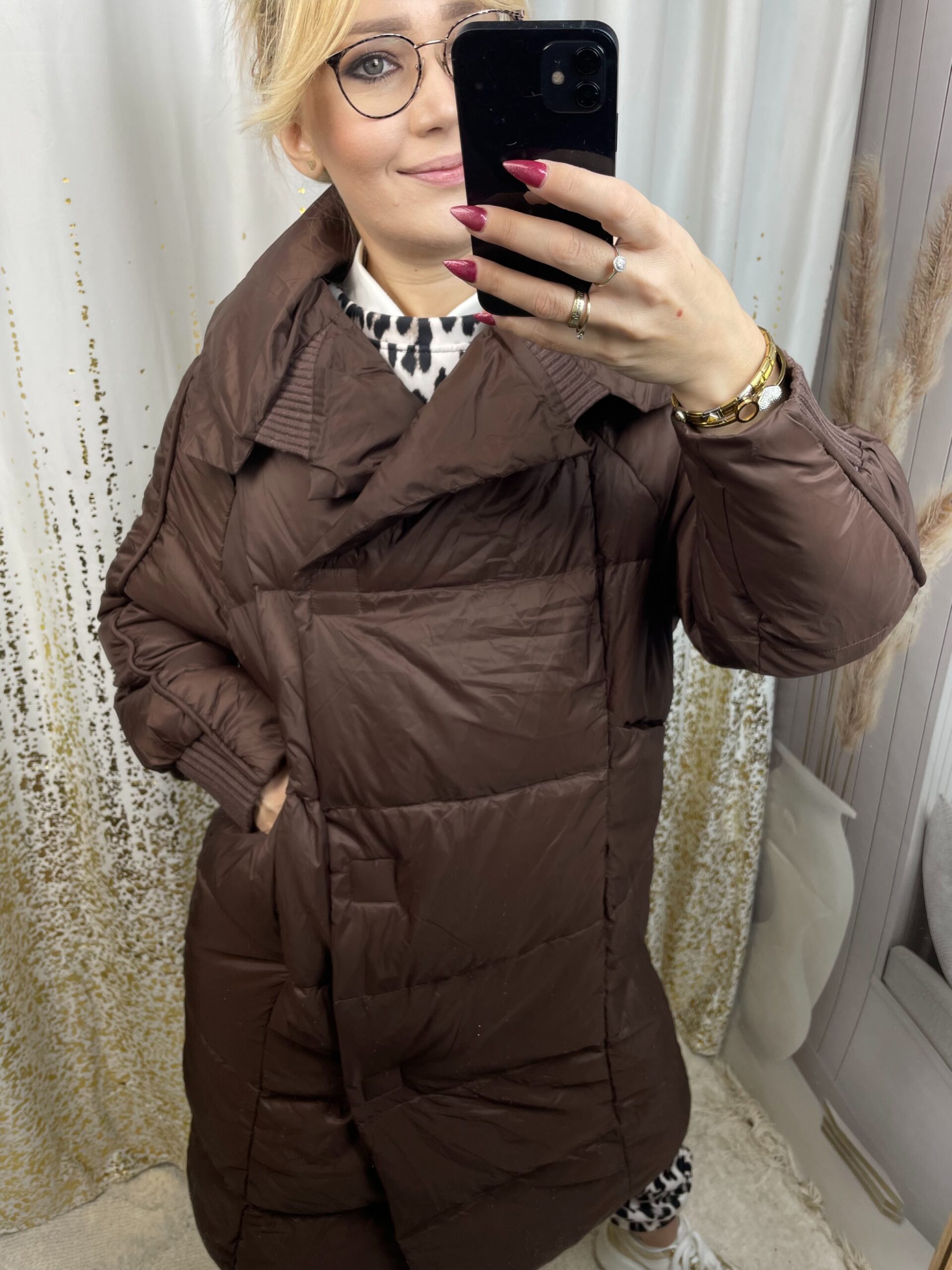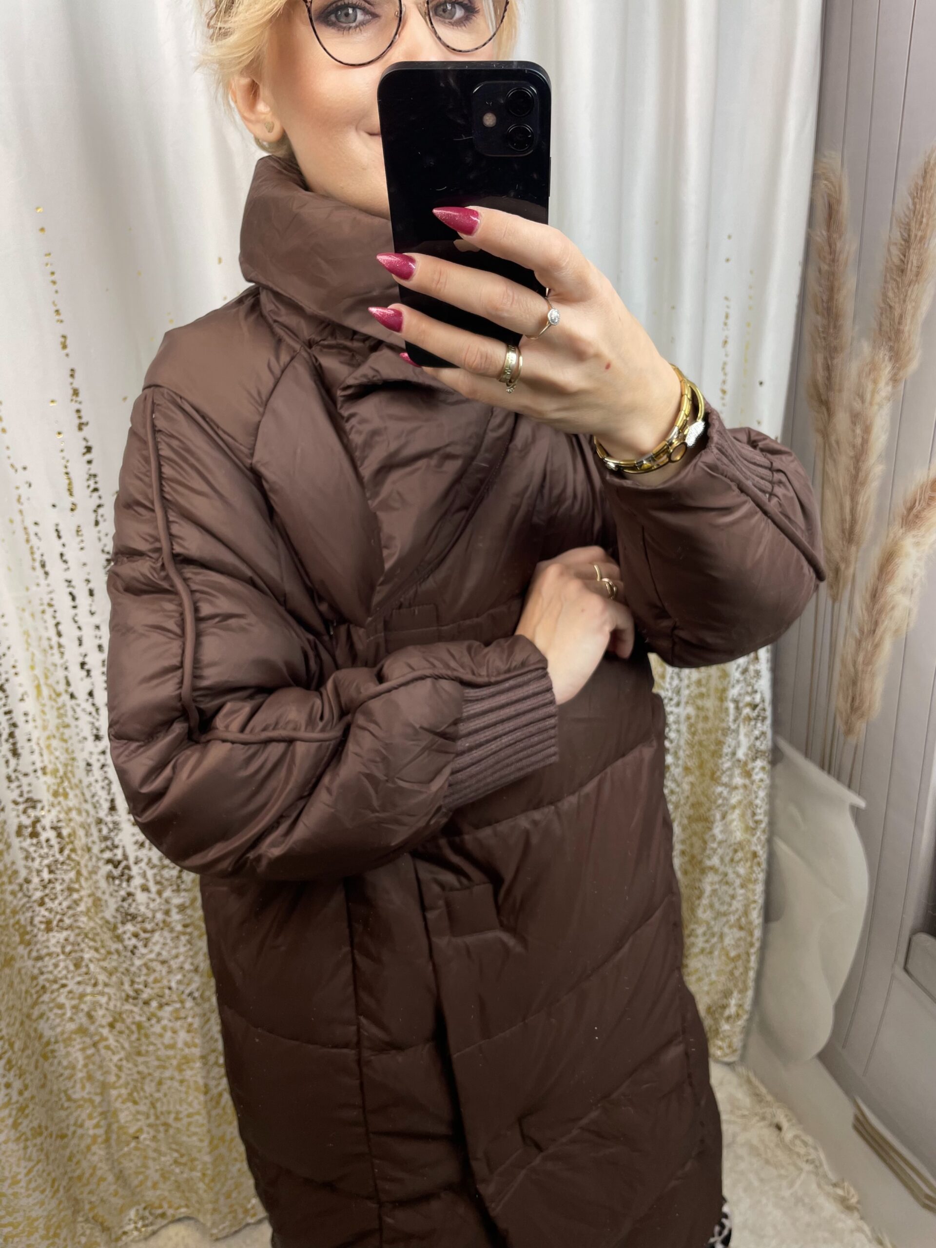 Płaszcz zimowy, z wypełnieniem puchowym ,przepięknym kołnierzem i przedłużanym ściągaczem wokół nadgarstka to idealny wybór na zimowe dni.Głównym i wyróżniającym atutem tej kurtki , jest delikatne pikowanie oraz oraz oryginalny krój.