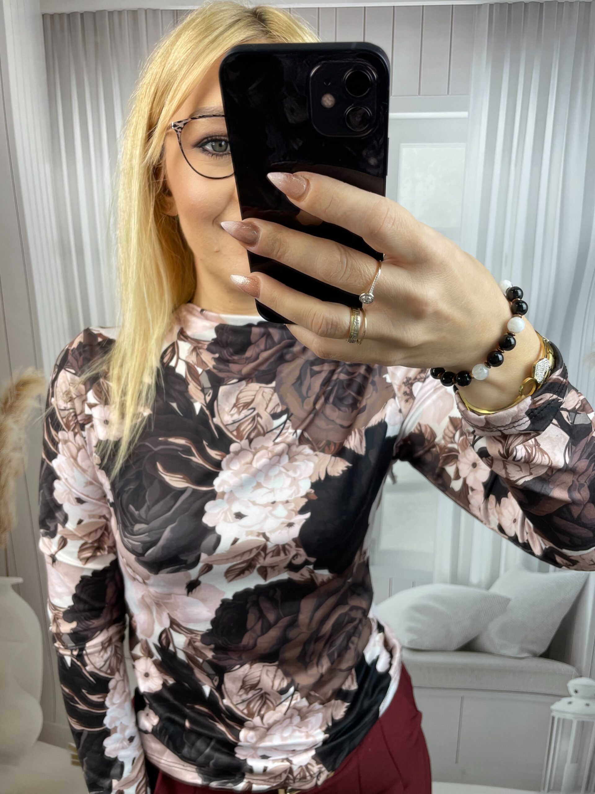 Półgolf w Kwiaty Brązowo-Beżowy - Kozar