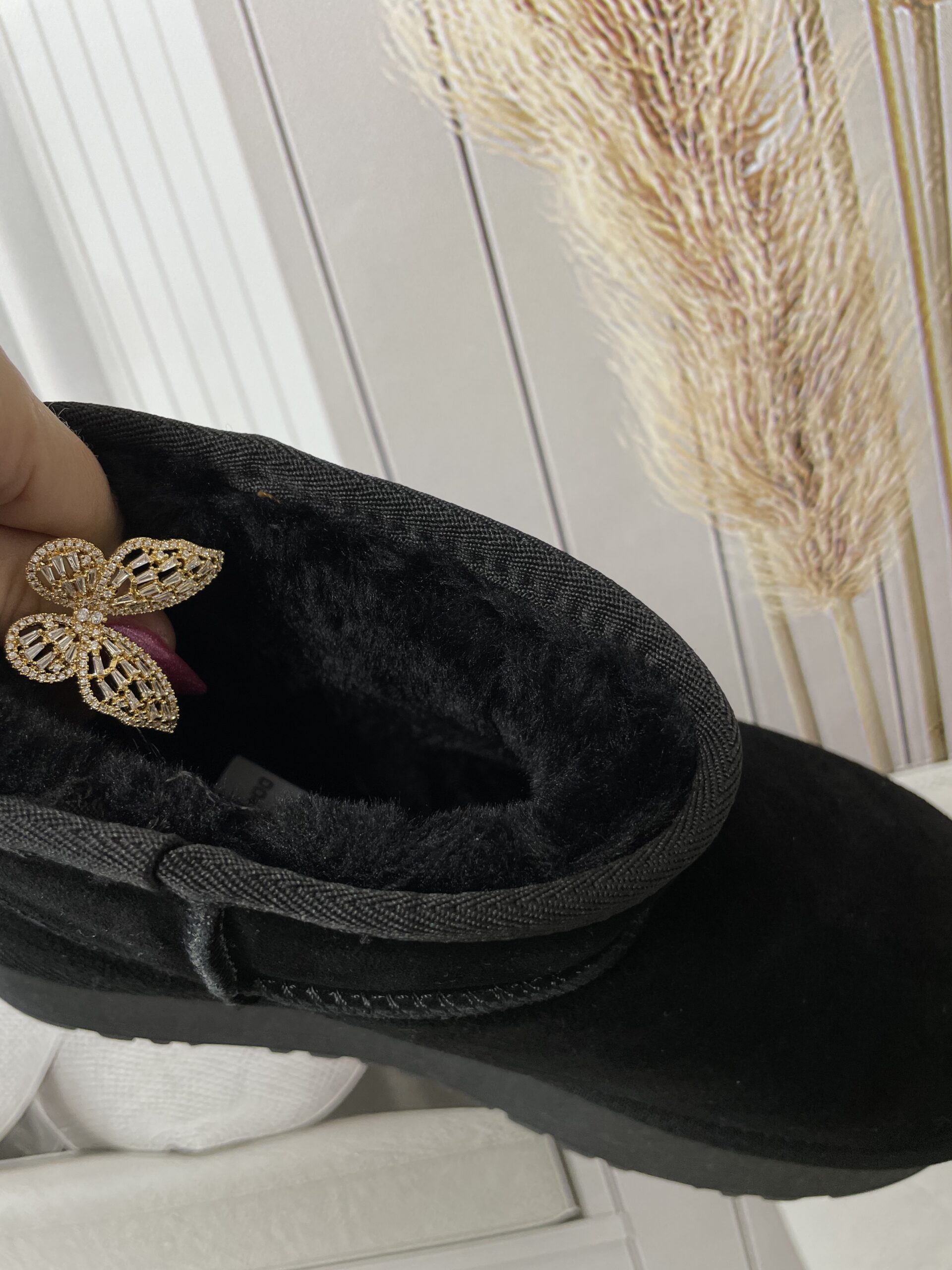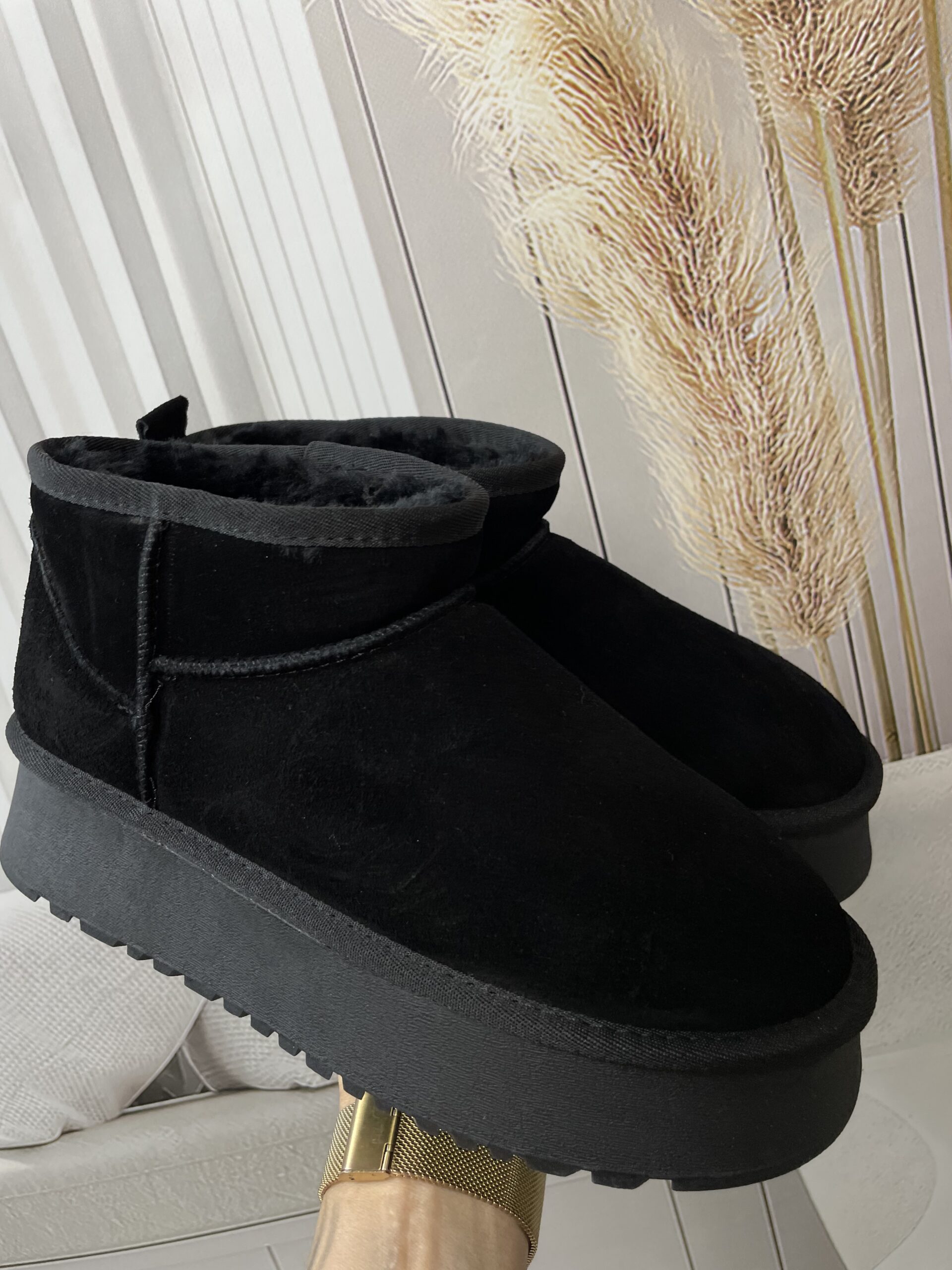 Czarne śniegowce z niską cholewka wykonane ze skóry zamszowej to doskonałe połączenie wygody i stylu.Płaska gruba podeszwa ,idealnie sprawdzi się na co dzień , do niemal każdej stylizacji. Taki model śniegowców to must-have w każdej szafie każdej kobiety .