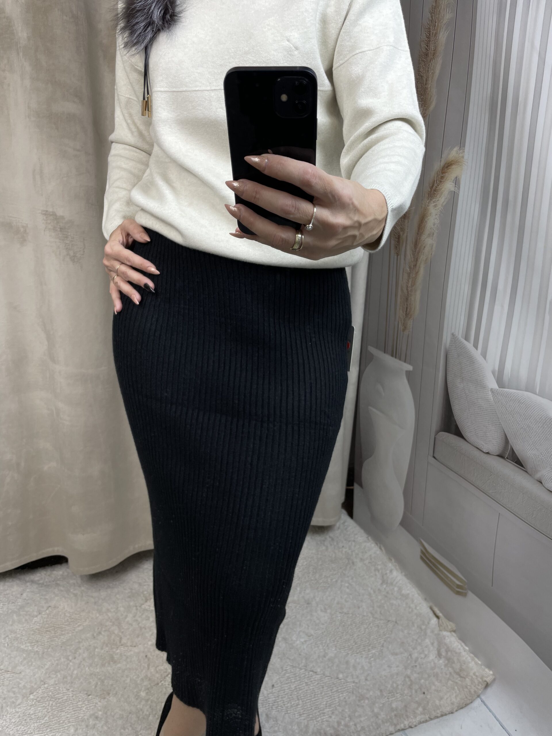 Spódnica ołówkowa to must have w szafie każdej kobiety , charakteryzuje się przyległymi biodrami i zwężanym dołem .Ten model spódnicy, jest idealny dla każdej kobiety, która ceni sobie wygodę i komfort noszenia. Wykonana z ciepłej prążkowanej dzianiny która zapewnia wygodę i swobodę ruchów.