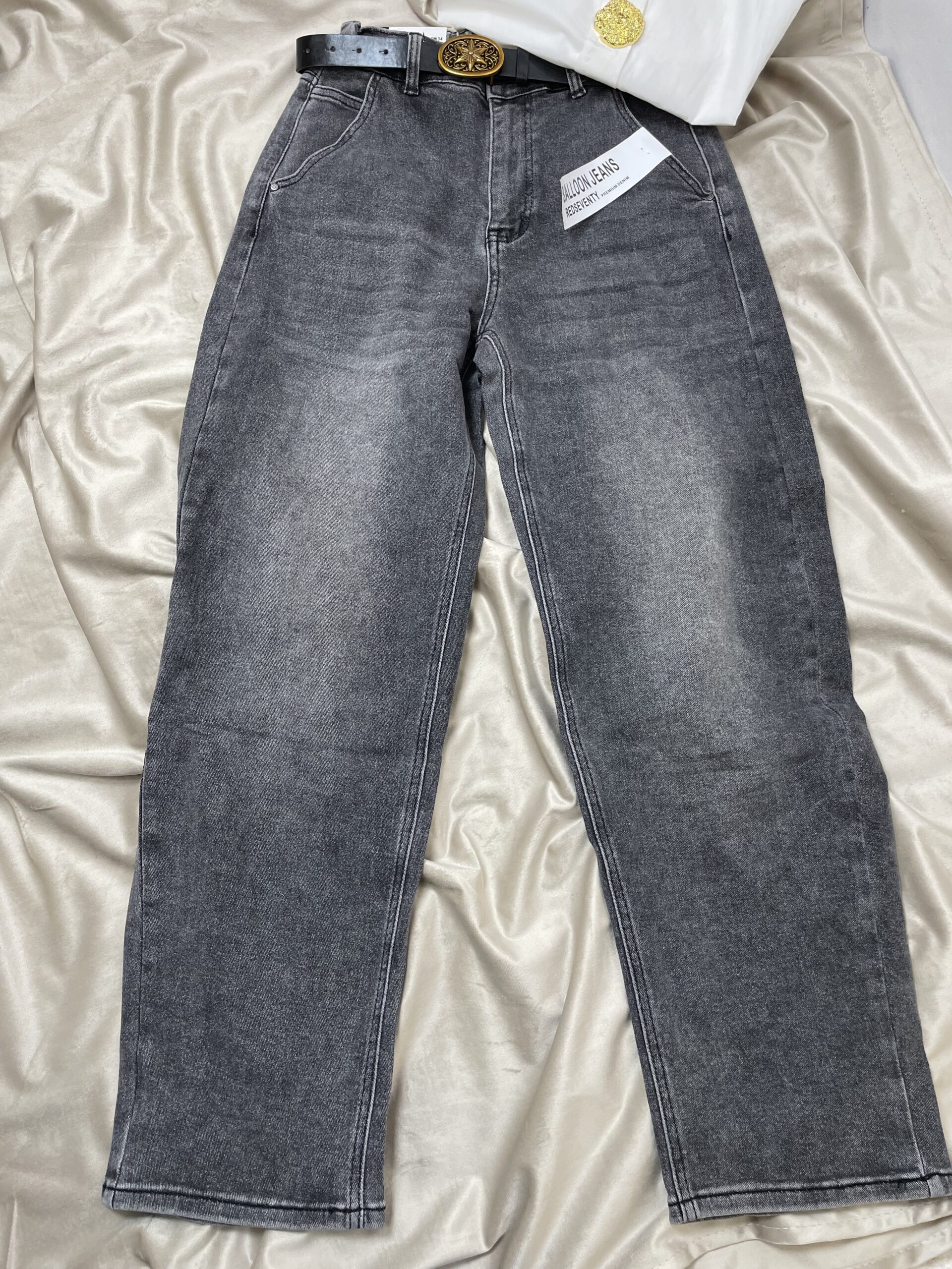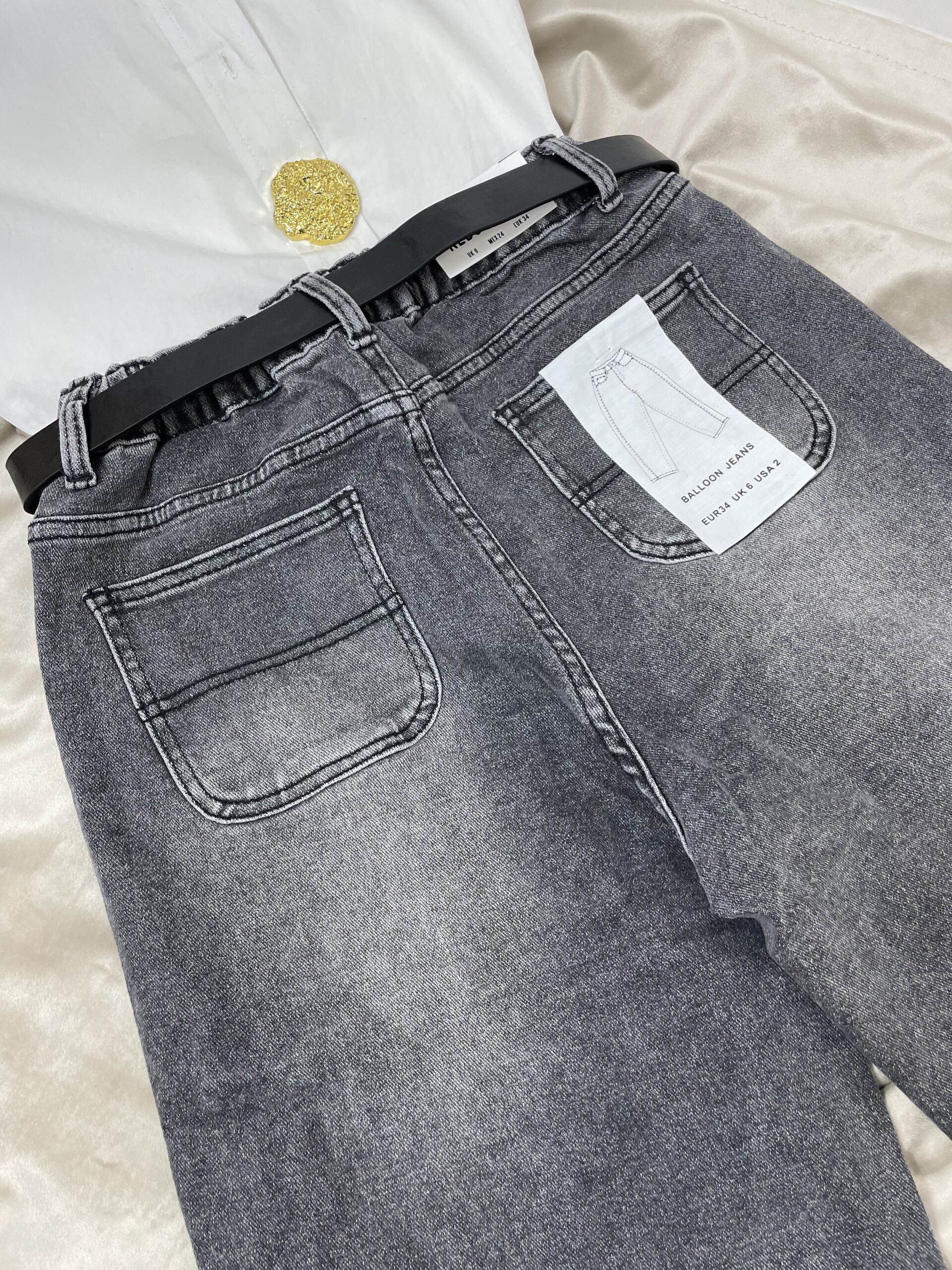 Szare spodnie balloon z paskiem – modny luz z nutą elegancji