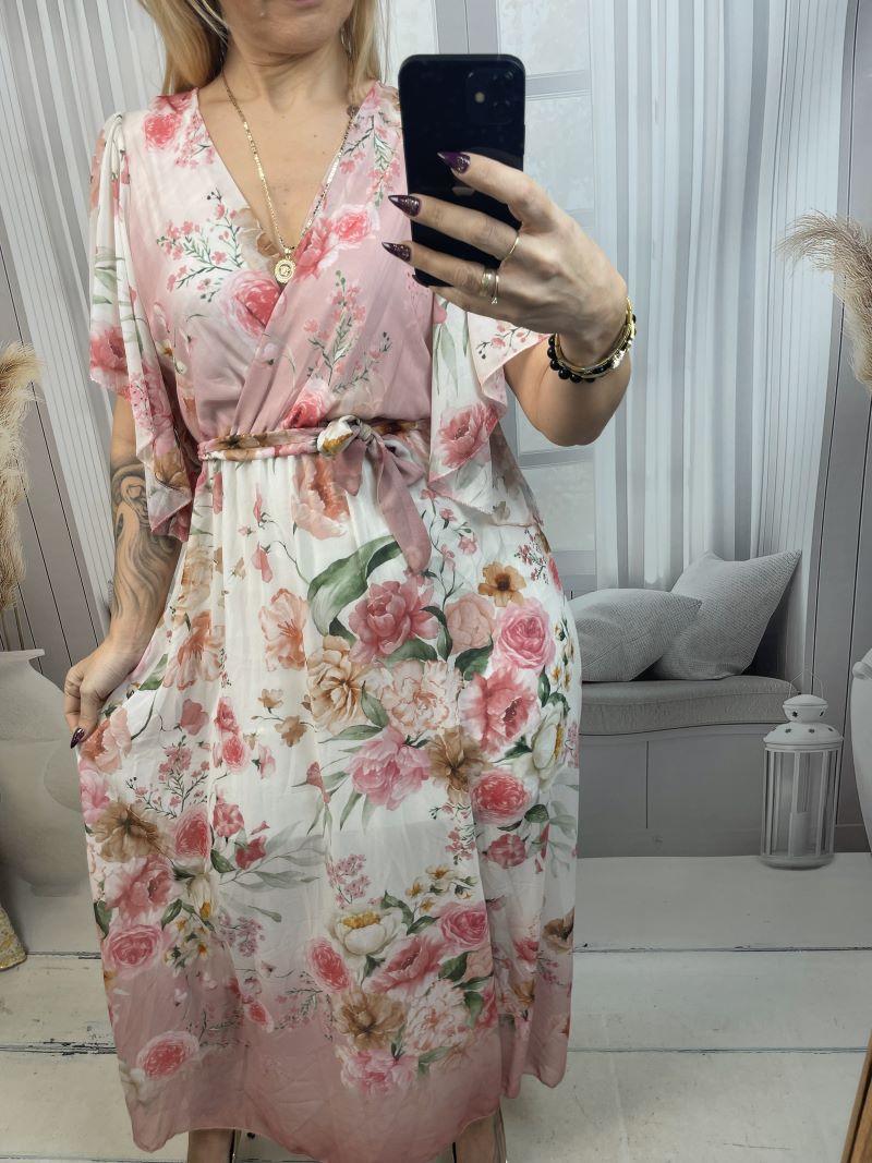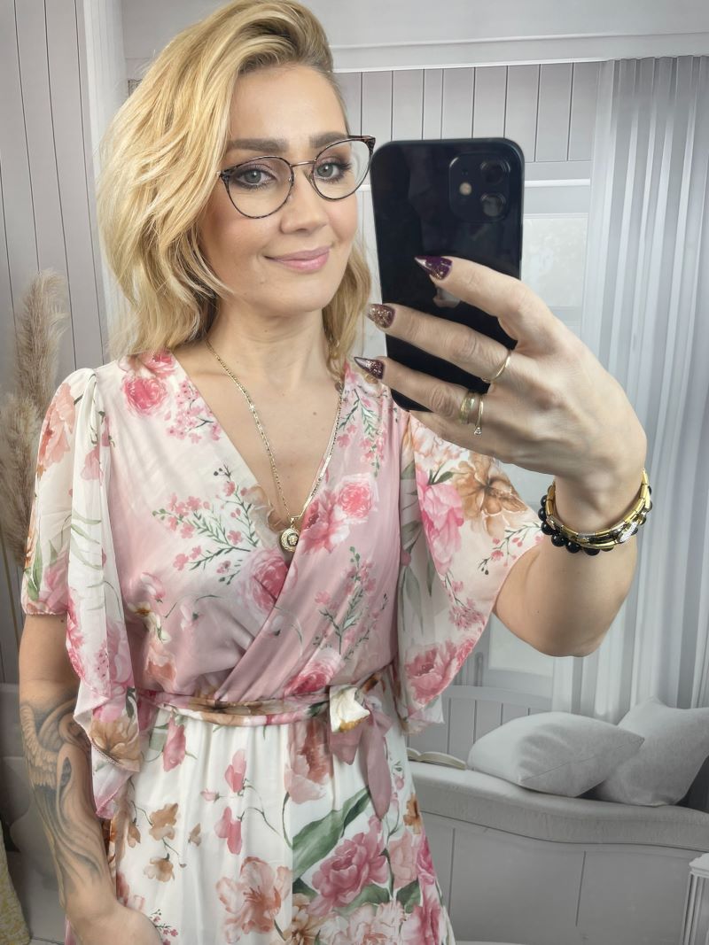 Sukienka Maxi w Kwiaty - Pudrowy Róż - Kozar