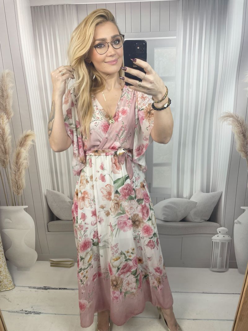Sukienka Maxi w Kwiaty – Pudrowy Róż