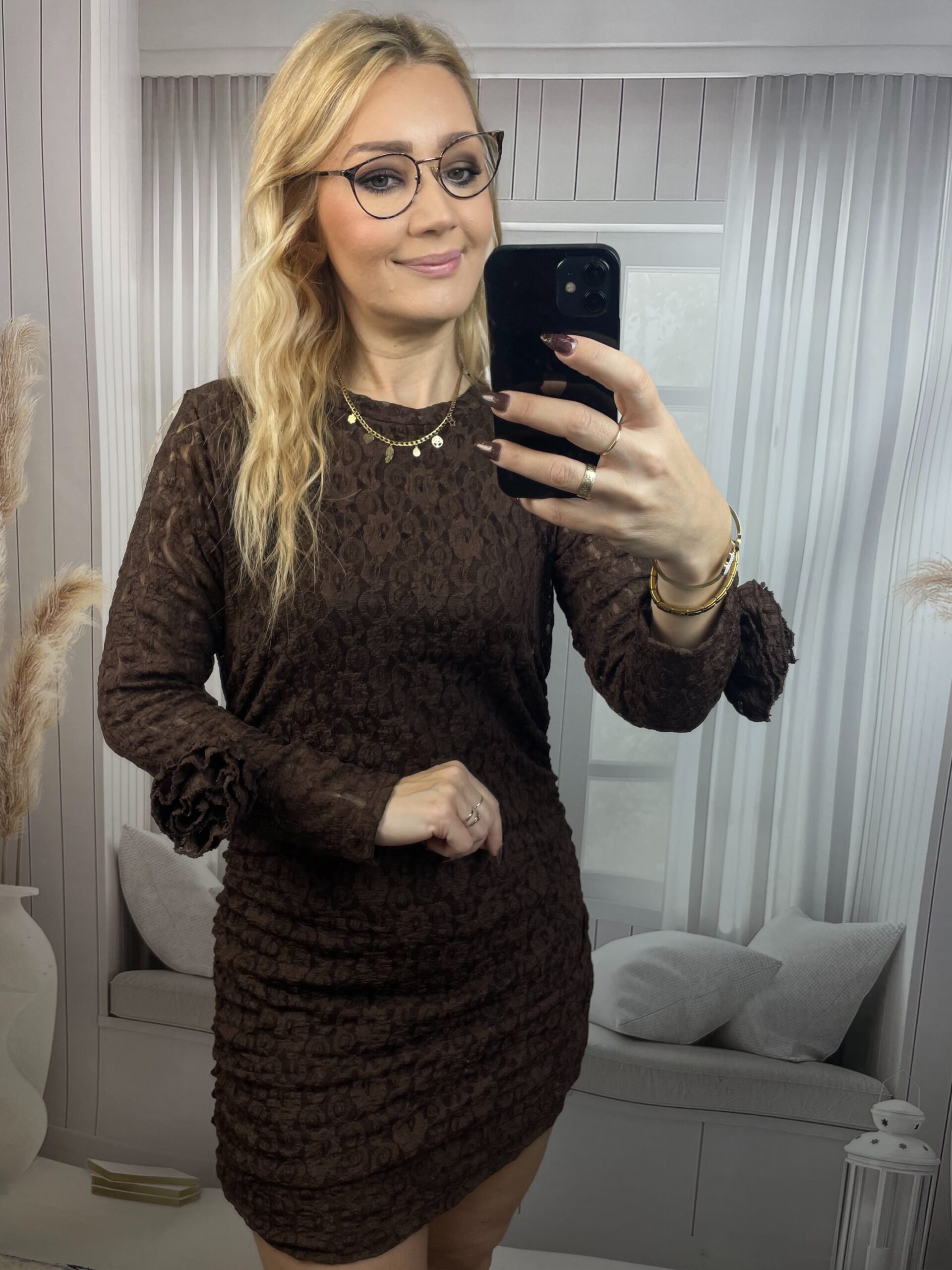 Nasza sukienka mini wykonana z elastycznej koronki pięknie dopasowuje się do sylwetki, podkreślając kształty, jednocześnie zapewniając pełną swobodę ruchu. To idealny wybór dla kobiet, które lubią wyglądać efektownie, ale cenią wygodę i komfort noszenia.
