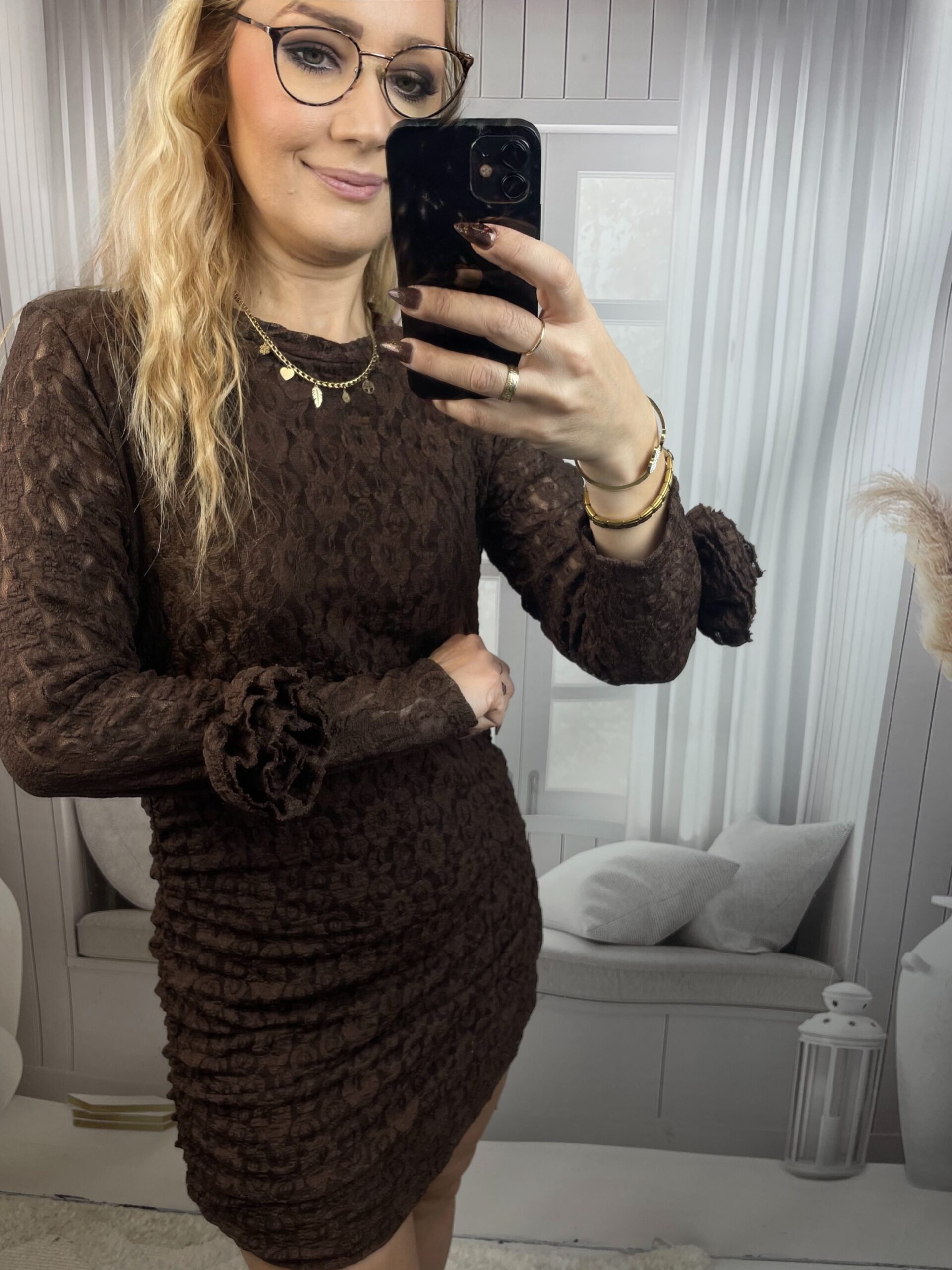 Sukienka mini z elastycznej koronki z różami na rękawach – zmysłowa, modna, wyjątkowa