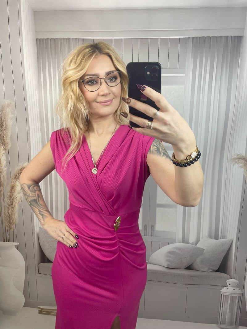 Ta sukienka została zaprojektowana dla kobiet, które lubią wyglądać elegancko, kobieco i nowocześnie, a jednocześnie cenią wygodę i przemyślany krój. Jeśli szukasz modelu, który pięknie modeluje sylwetkę i przyciąga uwagę subtelnymi, luksusowymi detalami — to właśnie znalazłaś swój ideał.