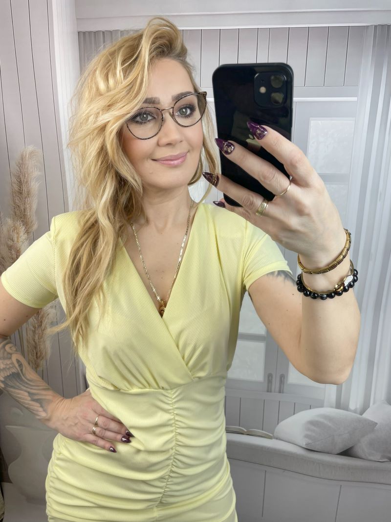 Sukienka Prążkowana z Dekoltem V – Żółty L/XL