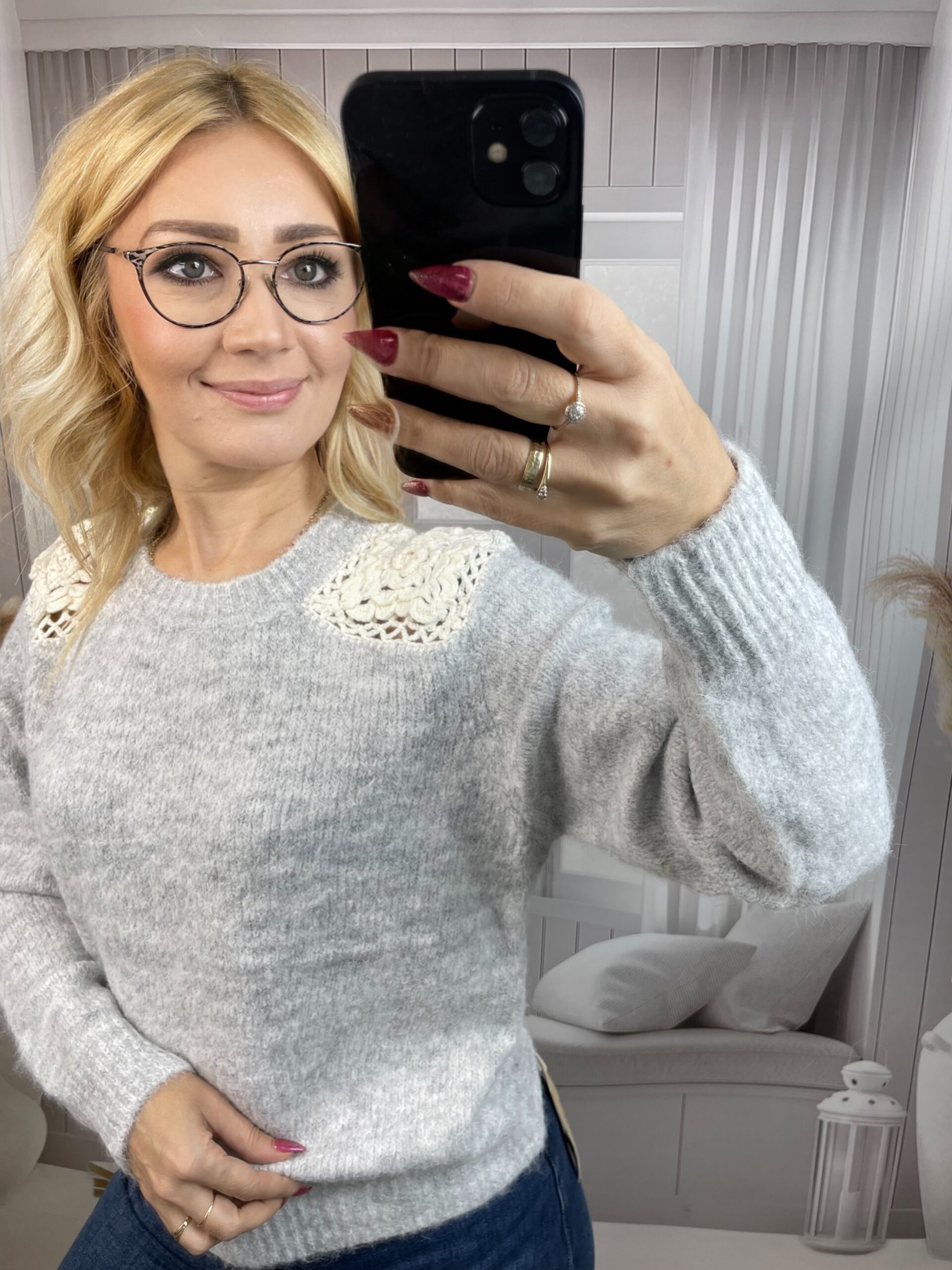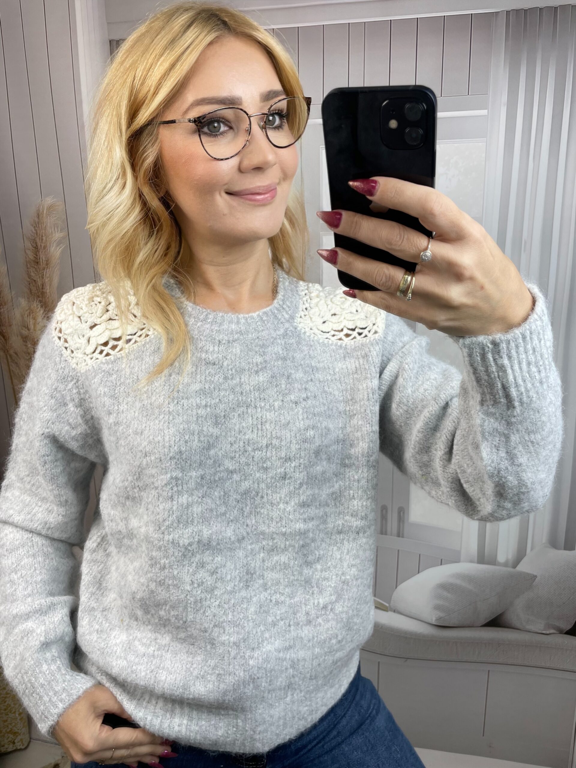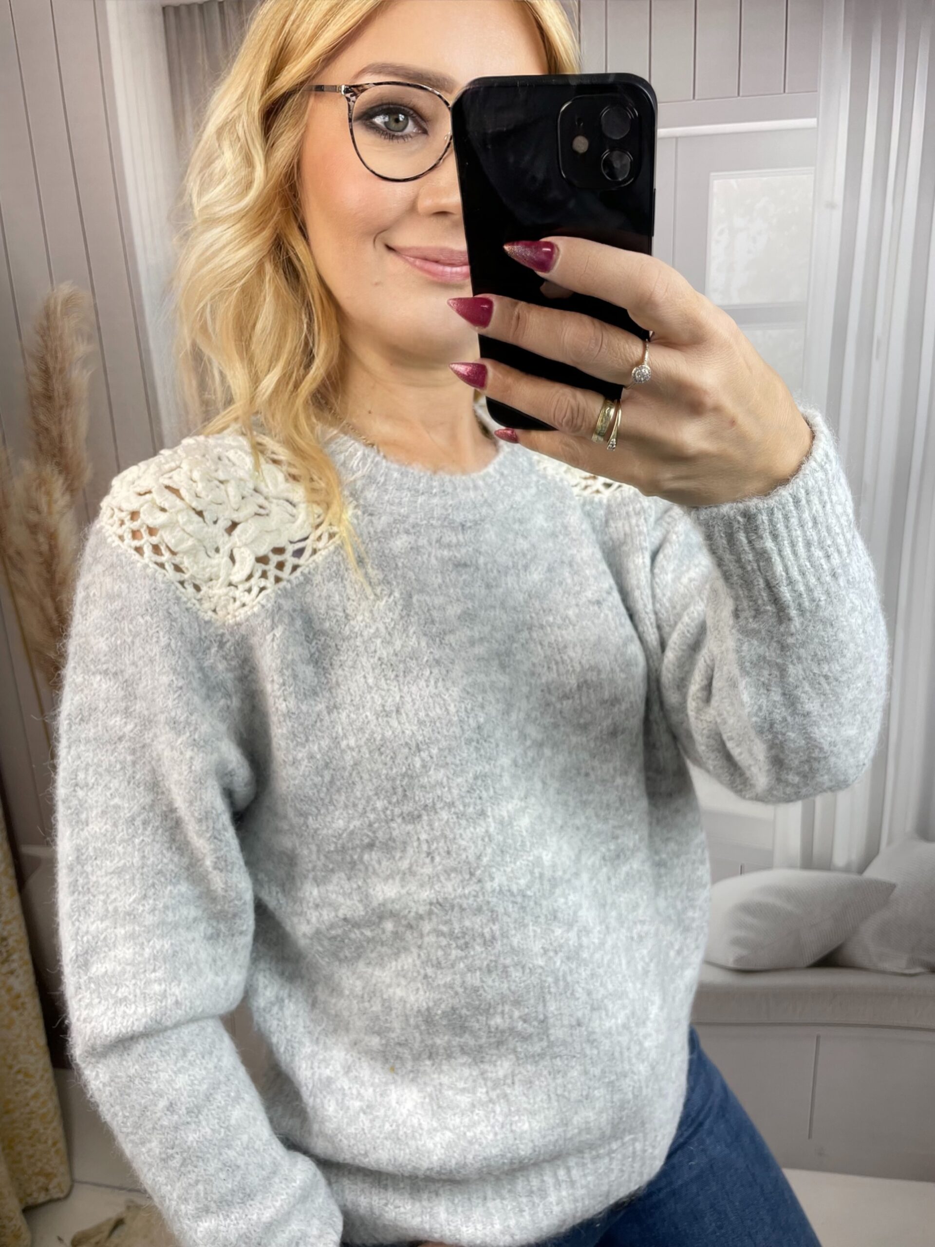 Sweter z Ażurową Wstawką Szary
