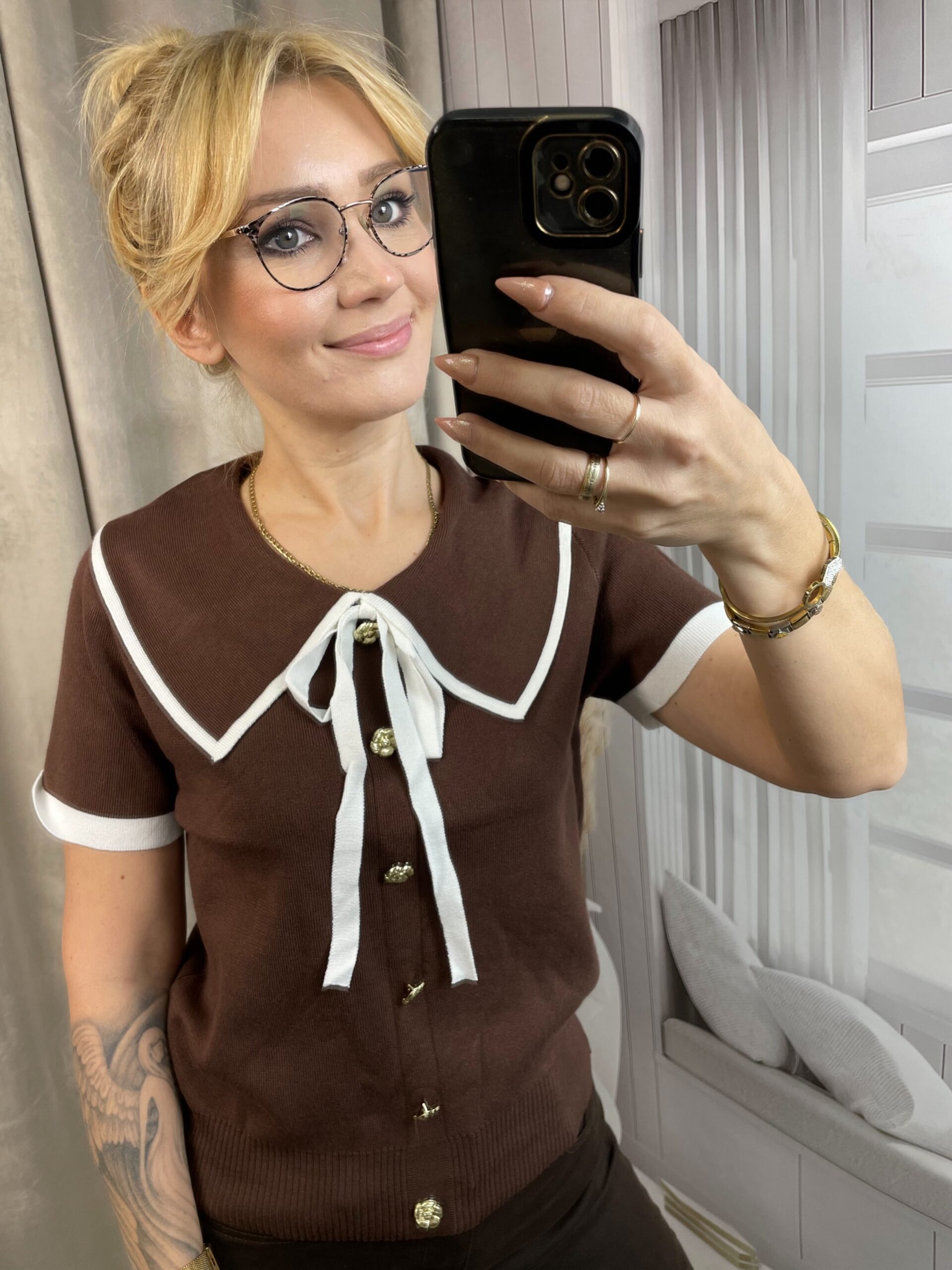 Sweter z Kołnierzykiem a;la Chanel Czekolada - Kozar
