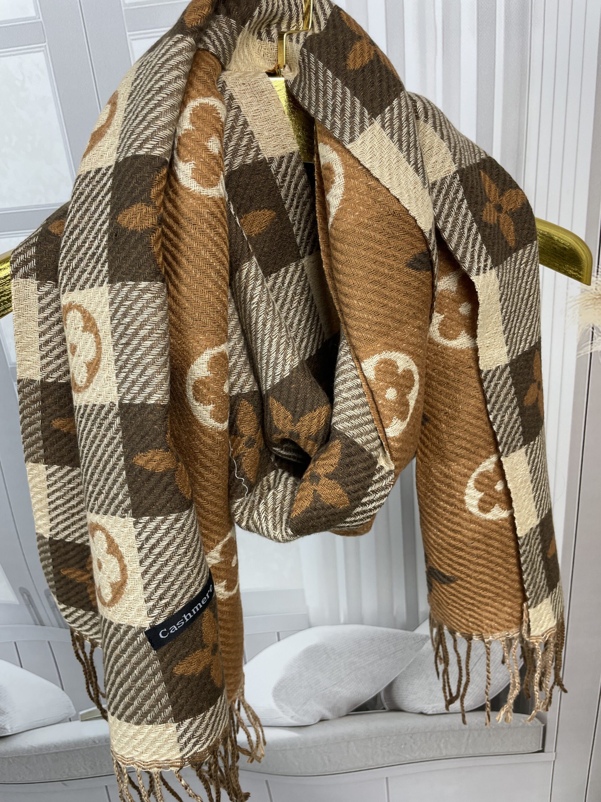 Postaw na elegancję i komfort w najlepszym wydaniu. Ten dwustronny szal z wełny i wiskozy to idealny towarzysz chłodnych dni – niezwykle miękki, przytulny i stylowy. Wzór w kratę i kwiaty w odcieniach beżu i brązu nadaje mu wyjątkowego charakteru – łączy klasykę z subtelną nutą romantyzmu.