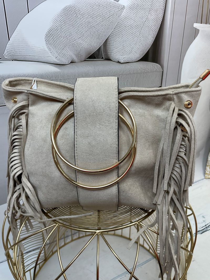 Torebka z Eko Zamszu z Frędzlami Jasny Beż