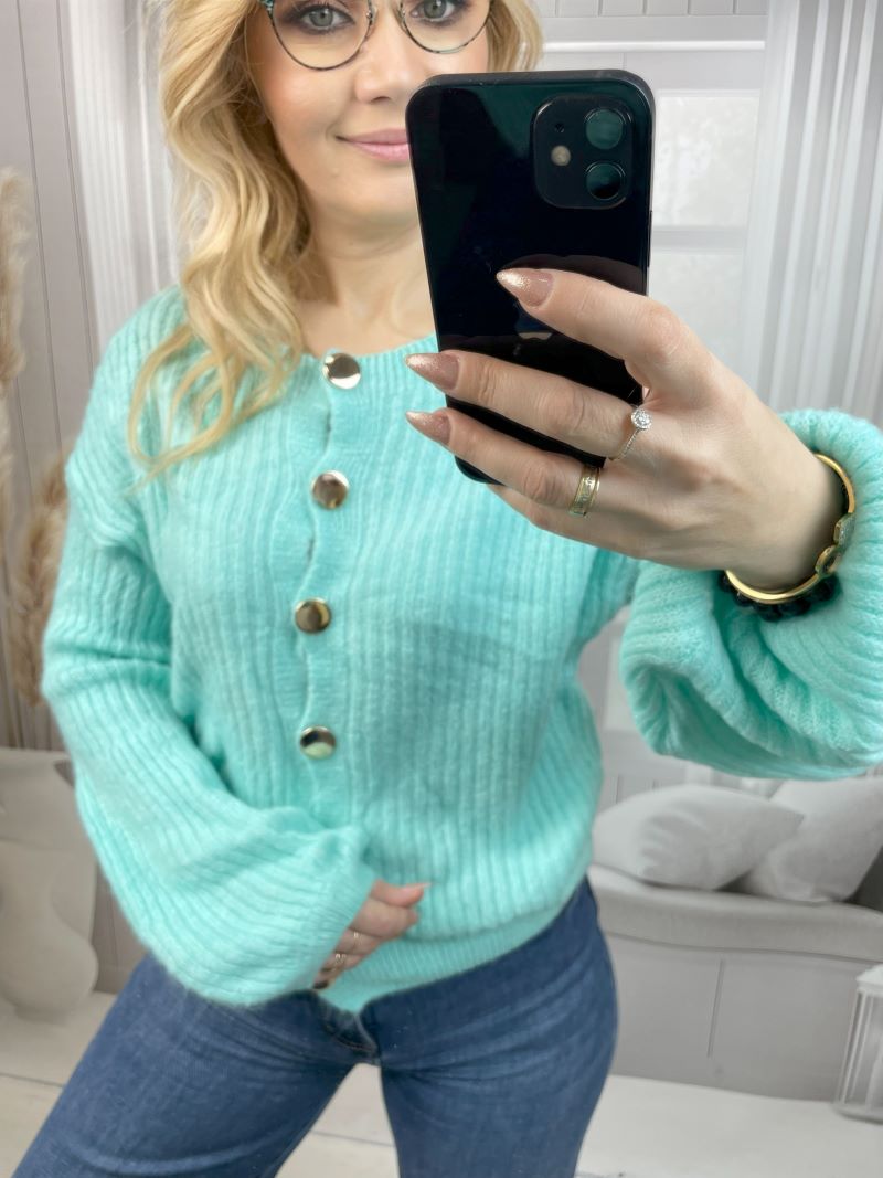 Zapinany Sweter z Rękawem Dzwonkowym Mięta